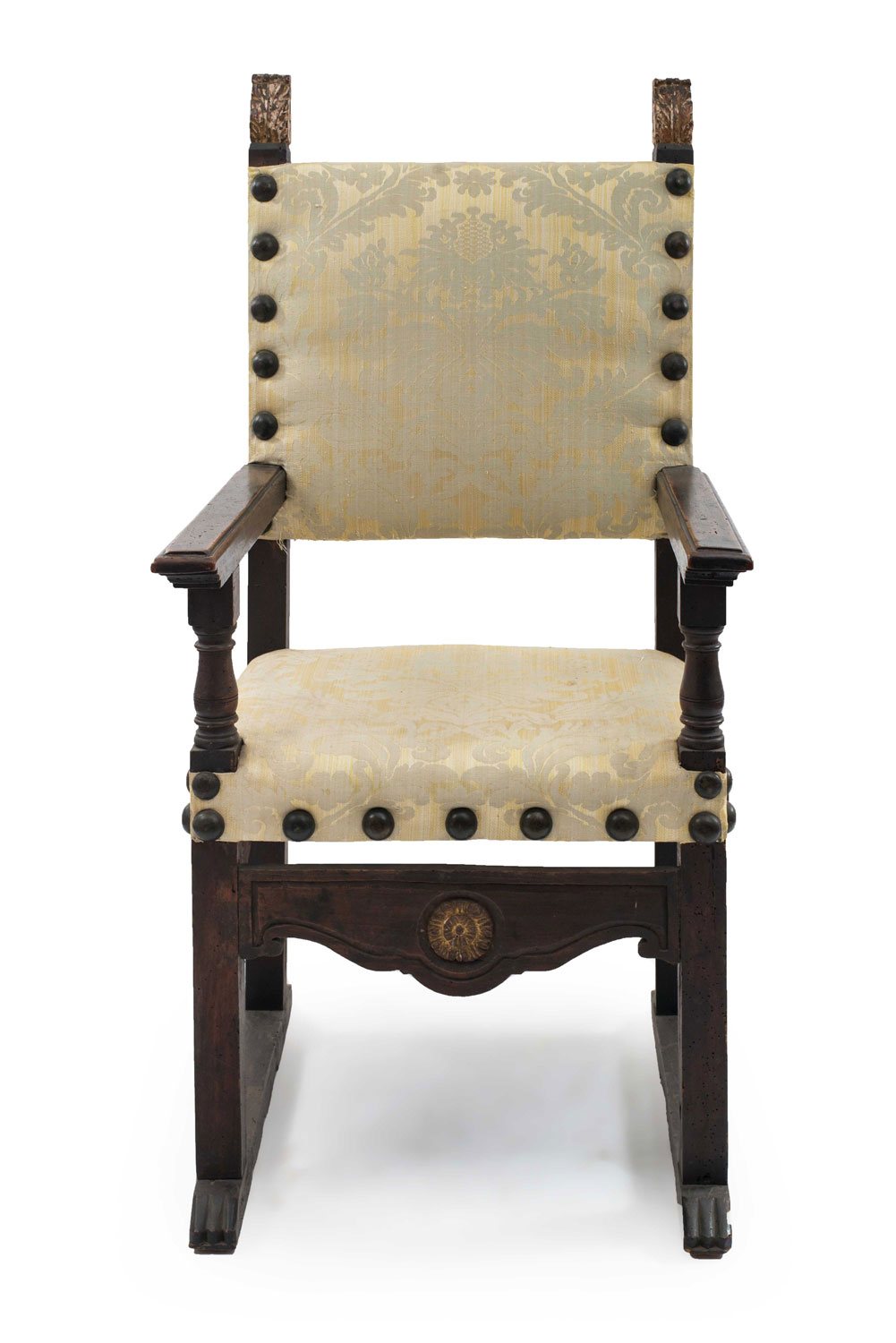 Style: Italian Materials & Techniques: Carved, lace, metal, walnut Category: Seating