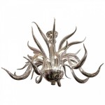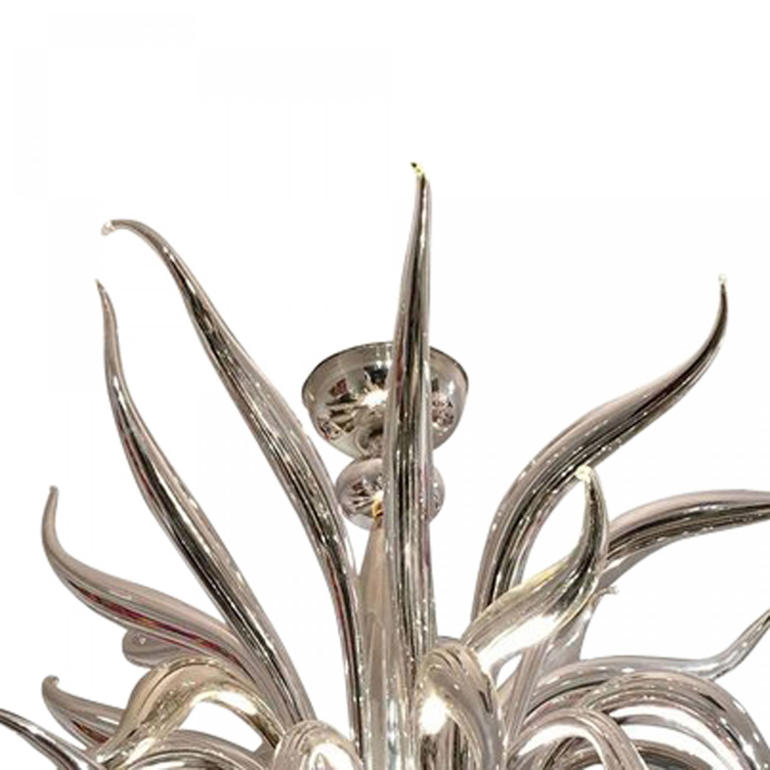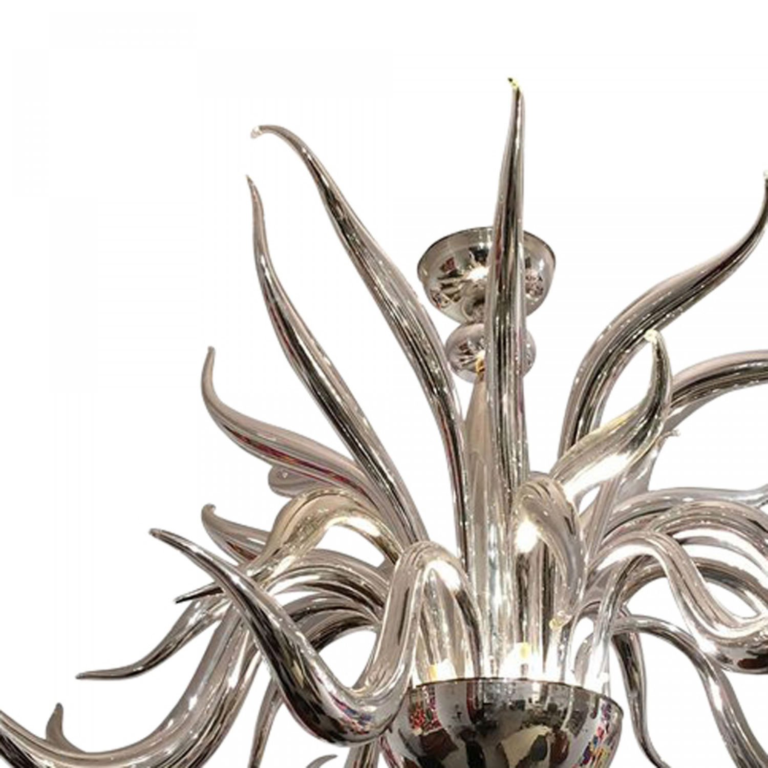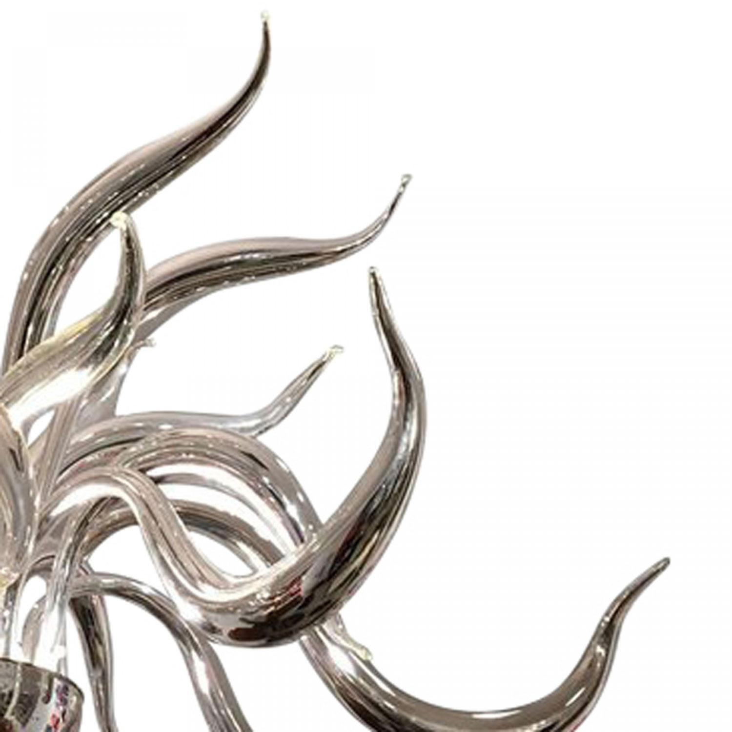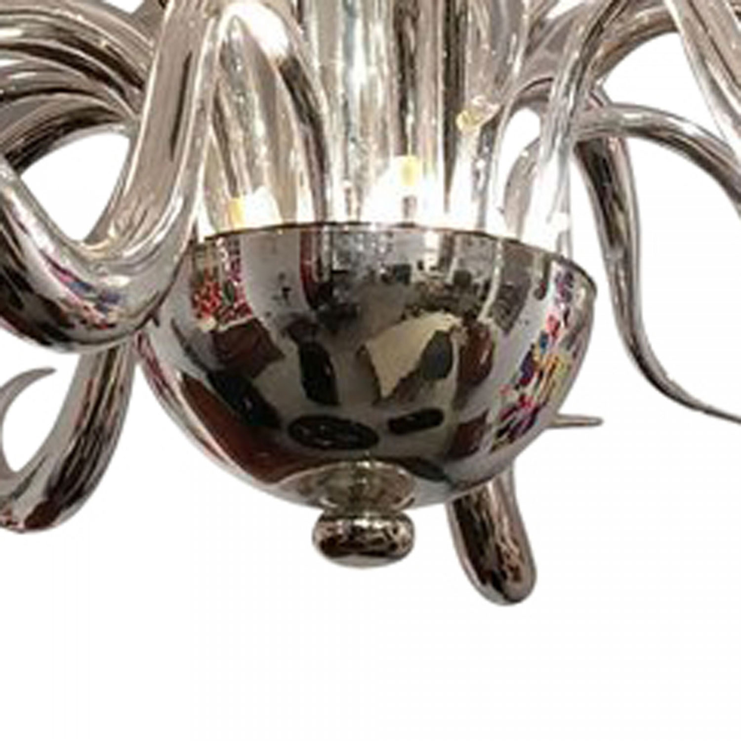 Post-War Design Italian Venetian Murano silvered glass chandelier with multiple scroll arms emanating from a center shaft with a bowl bottom.