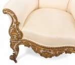 Style: Italian Materials & Techniques: Gold, painted, carved Category: Seating Condition: Some loss to finish, minor stains on upholstery.