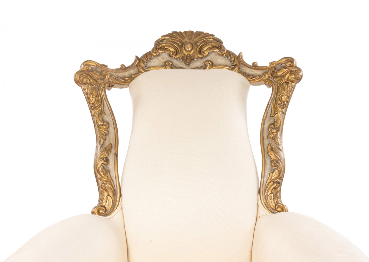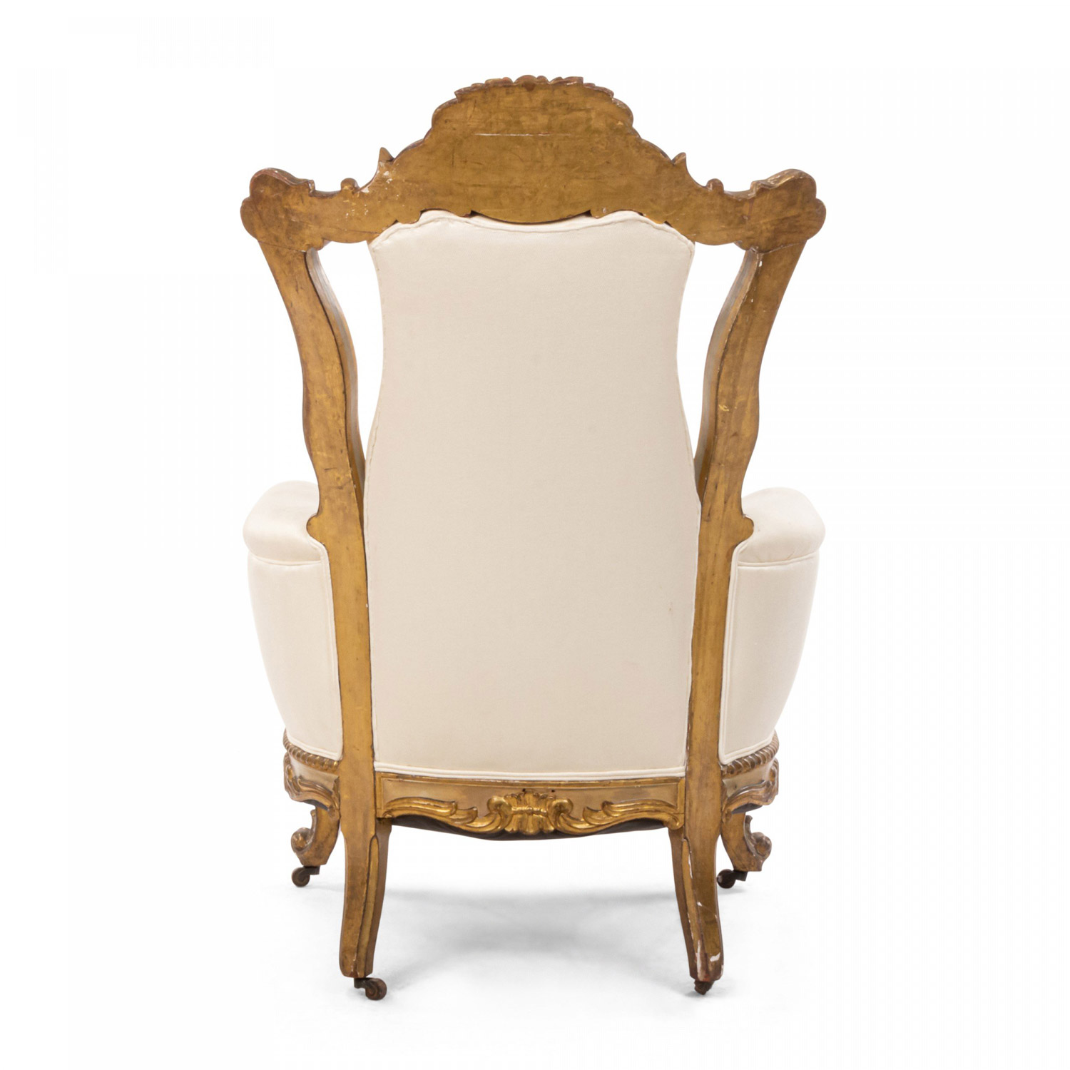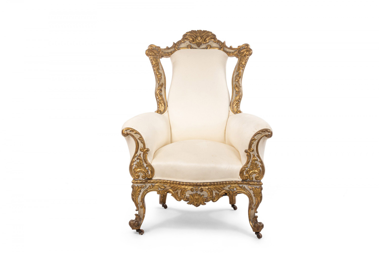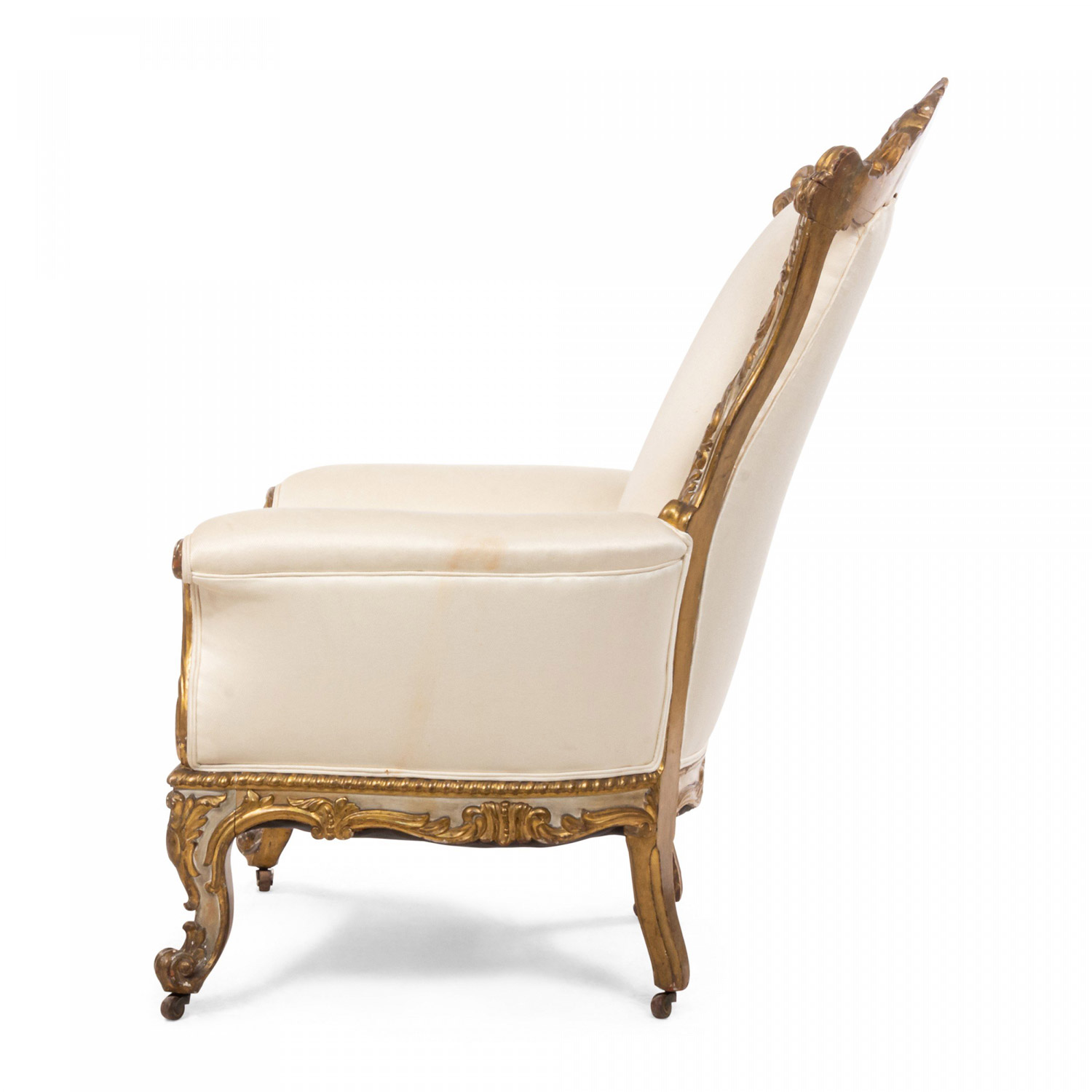 Italian Venetian-style (19th Century) white and gold painted and carved high back bergère with white upholstery.