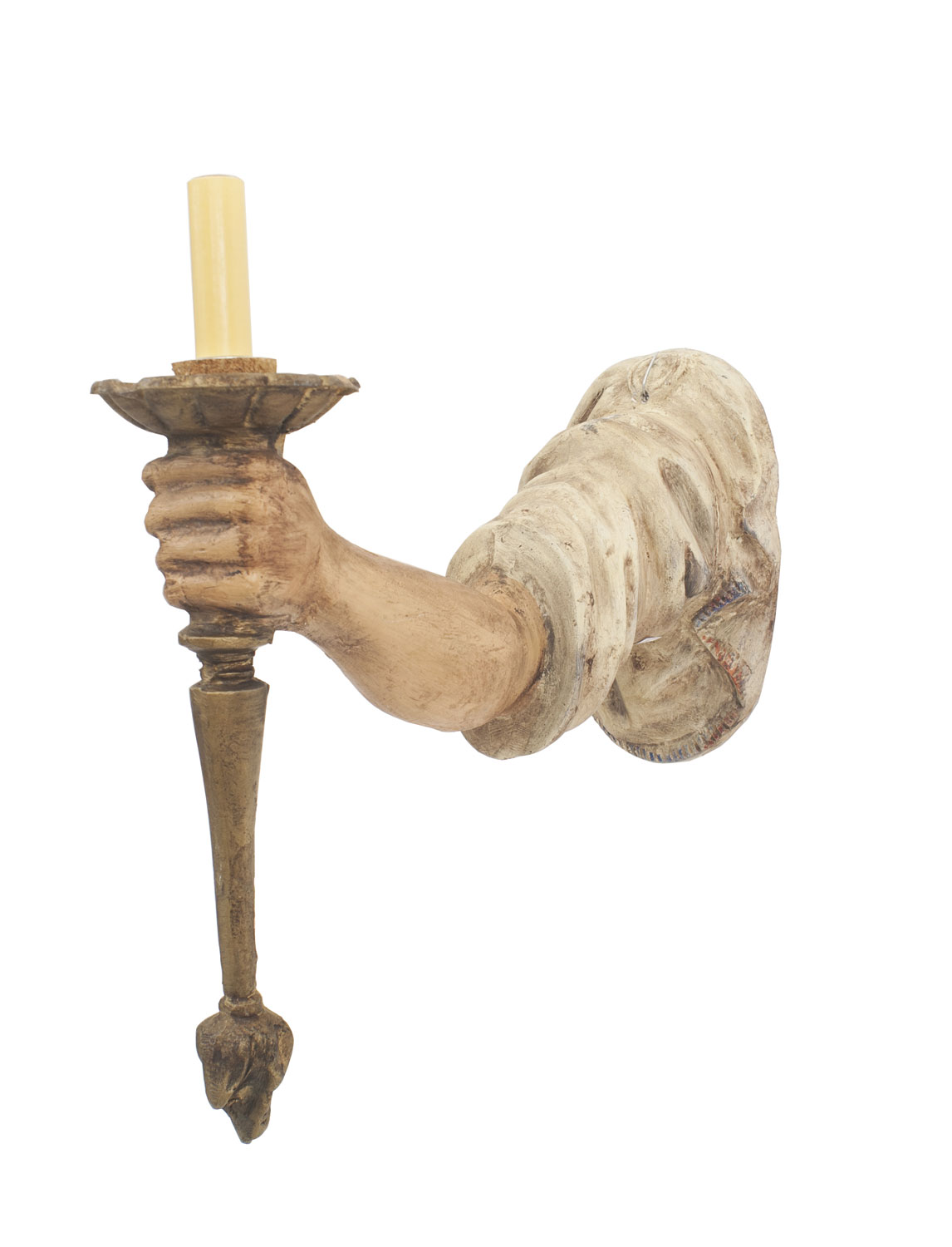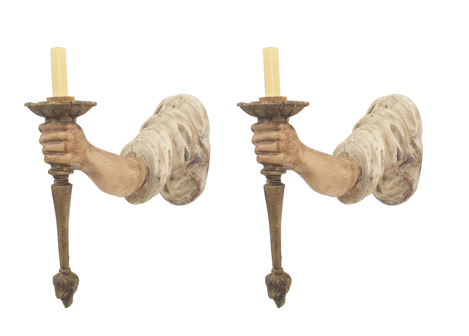 Pair of Italian Venetian Style Tole Metal Arm Shaped Wall Sconces