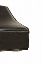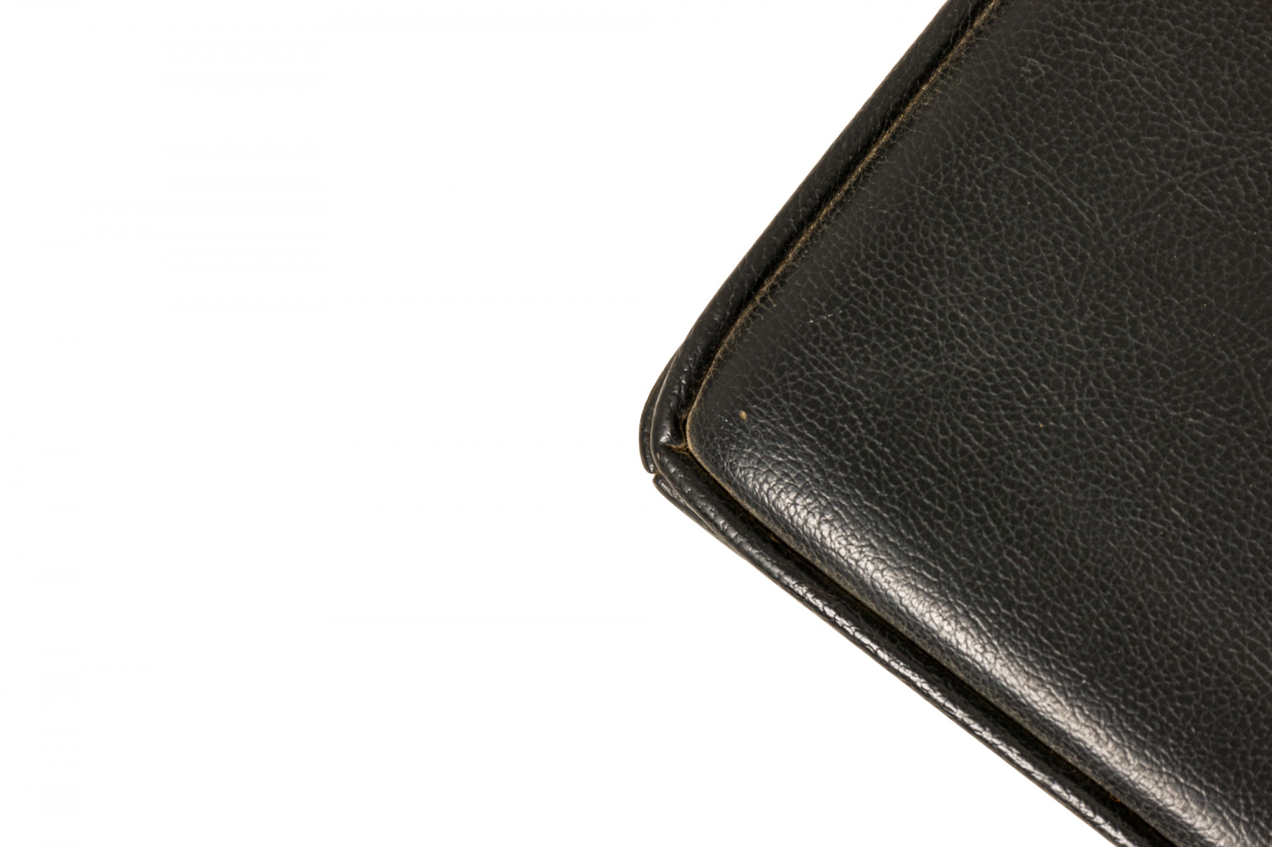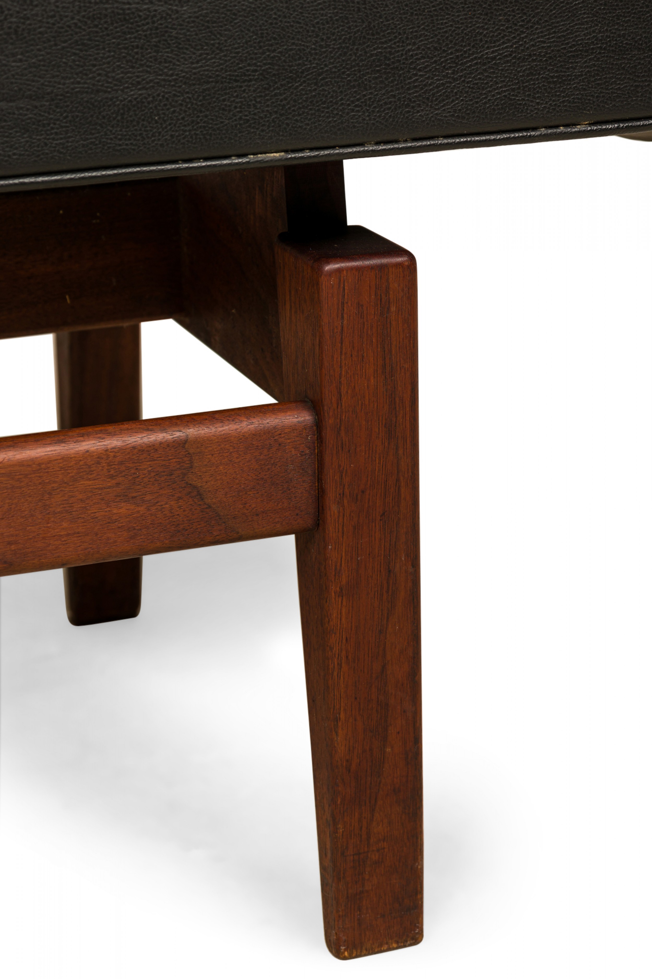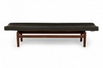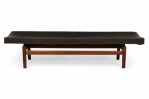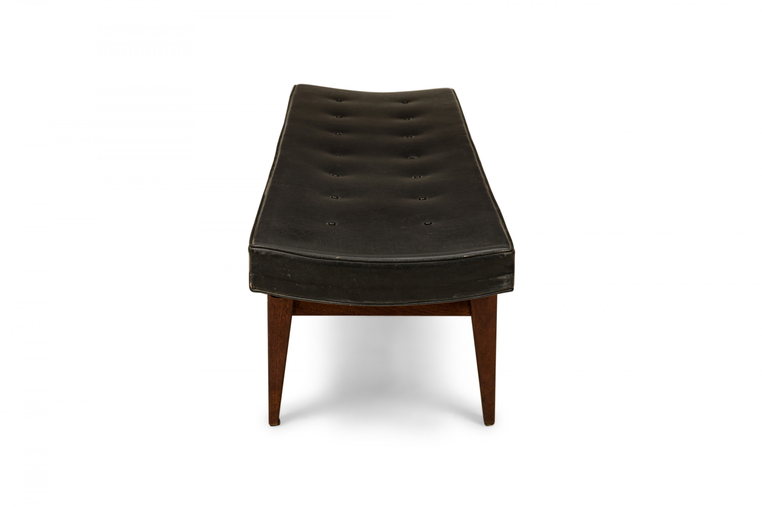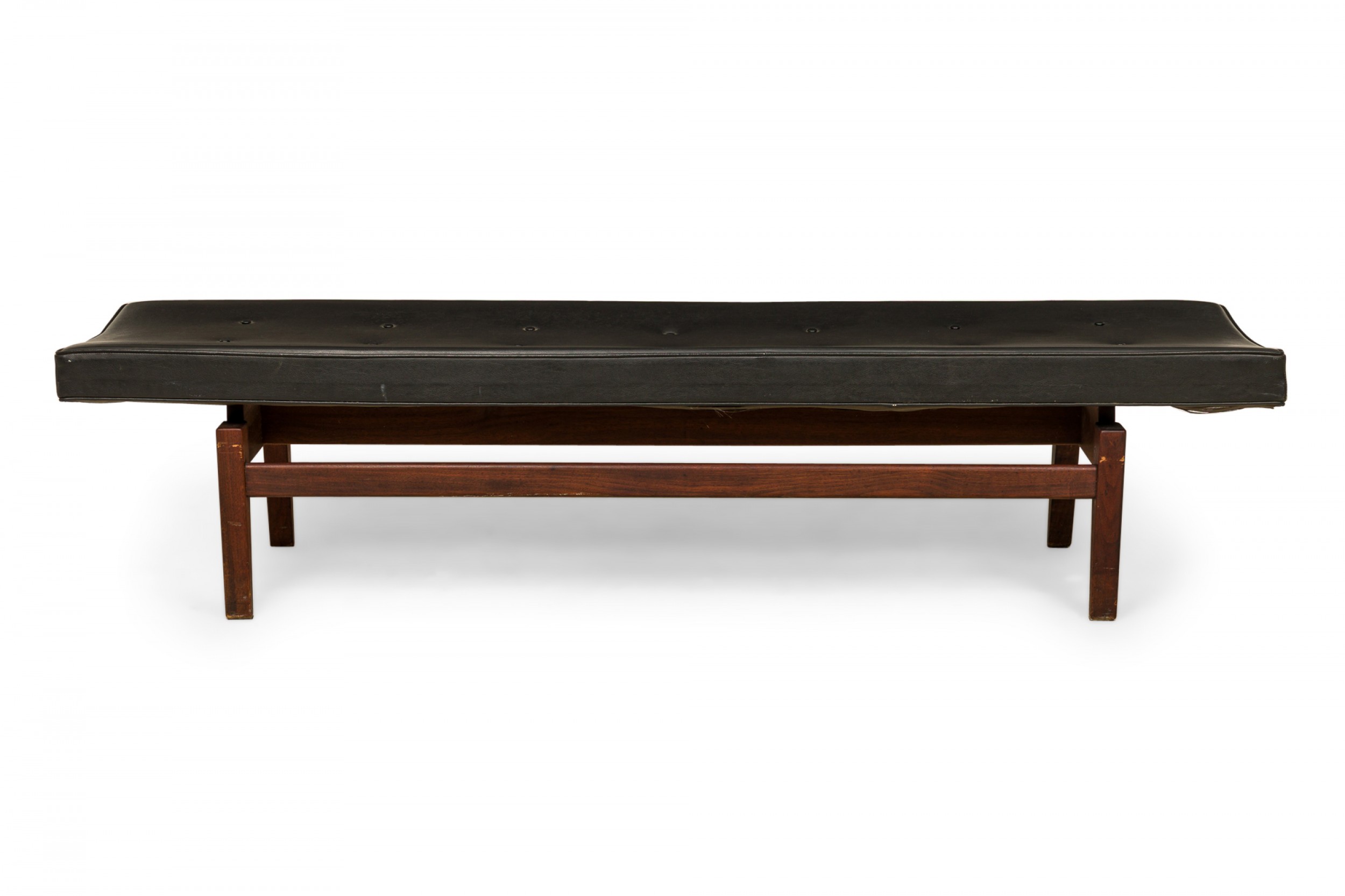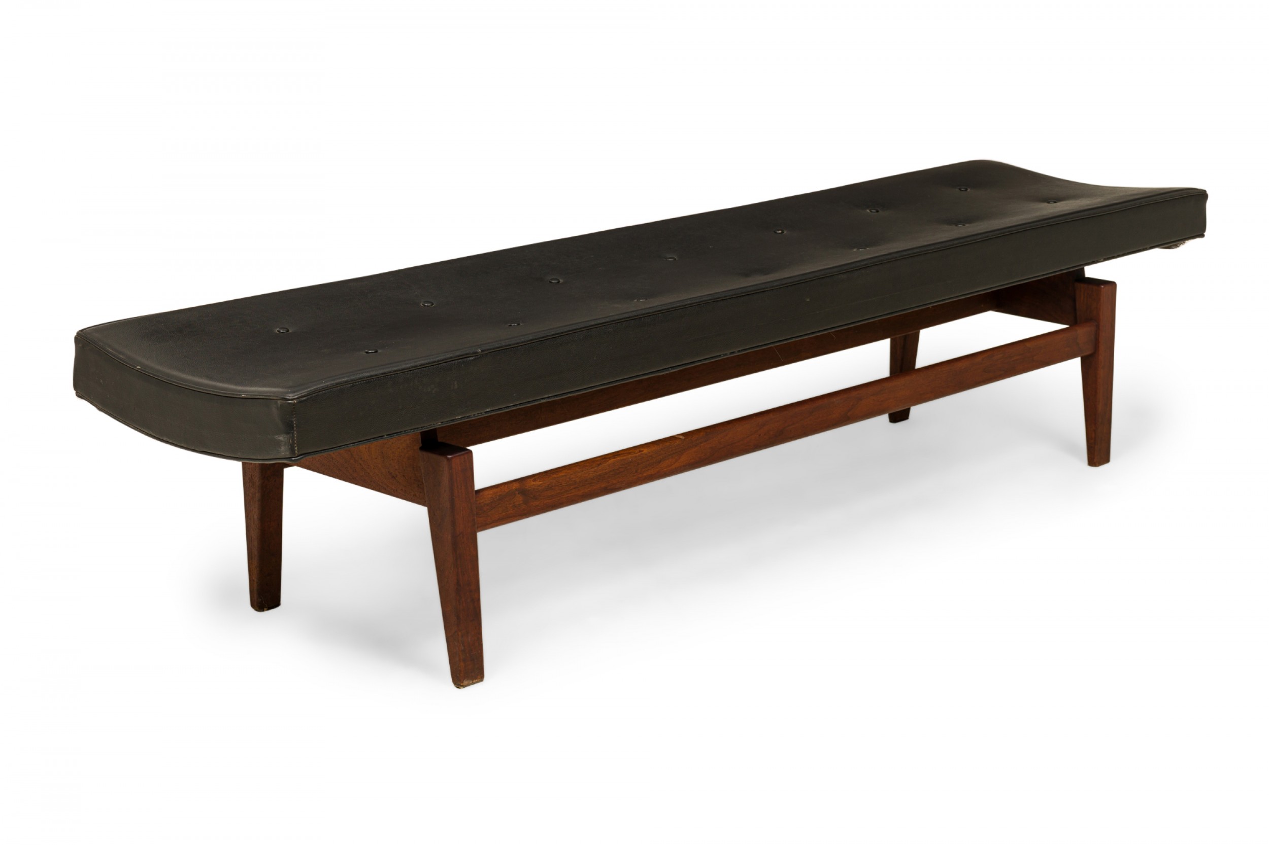 Jens Risom Danish Mid-Century Black Tufted Vinyl and Wood Floating Bench