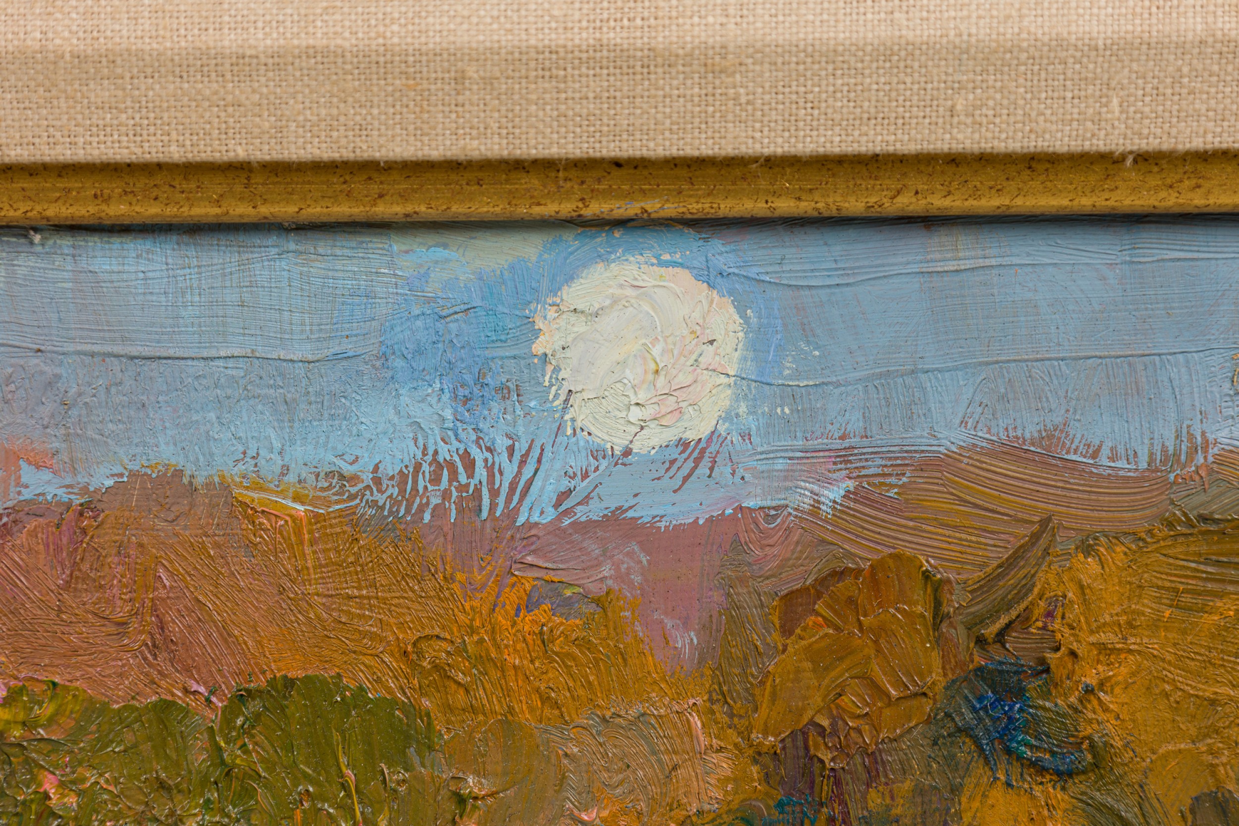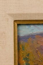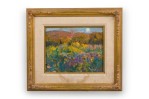 American Contemporary Impressionistic painting oil on board of a floral landscape in a gilded frame with a linen mat (JOSEPH BREZA) Joseph Breza (American, 20th Century), American Southwest Landscape, thick impasto on artist board, signed lower right, gallery label verso, matted and framed, 10.5"h x 13.5"w (sight), 20"h x 22"w (frame)