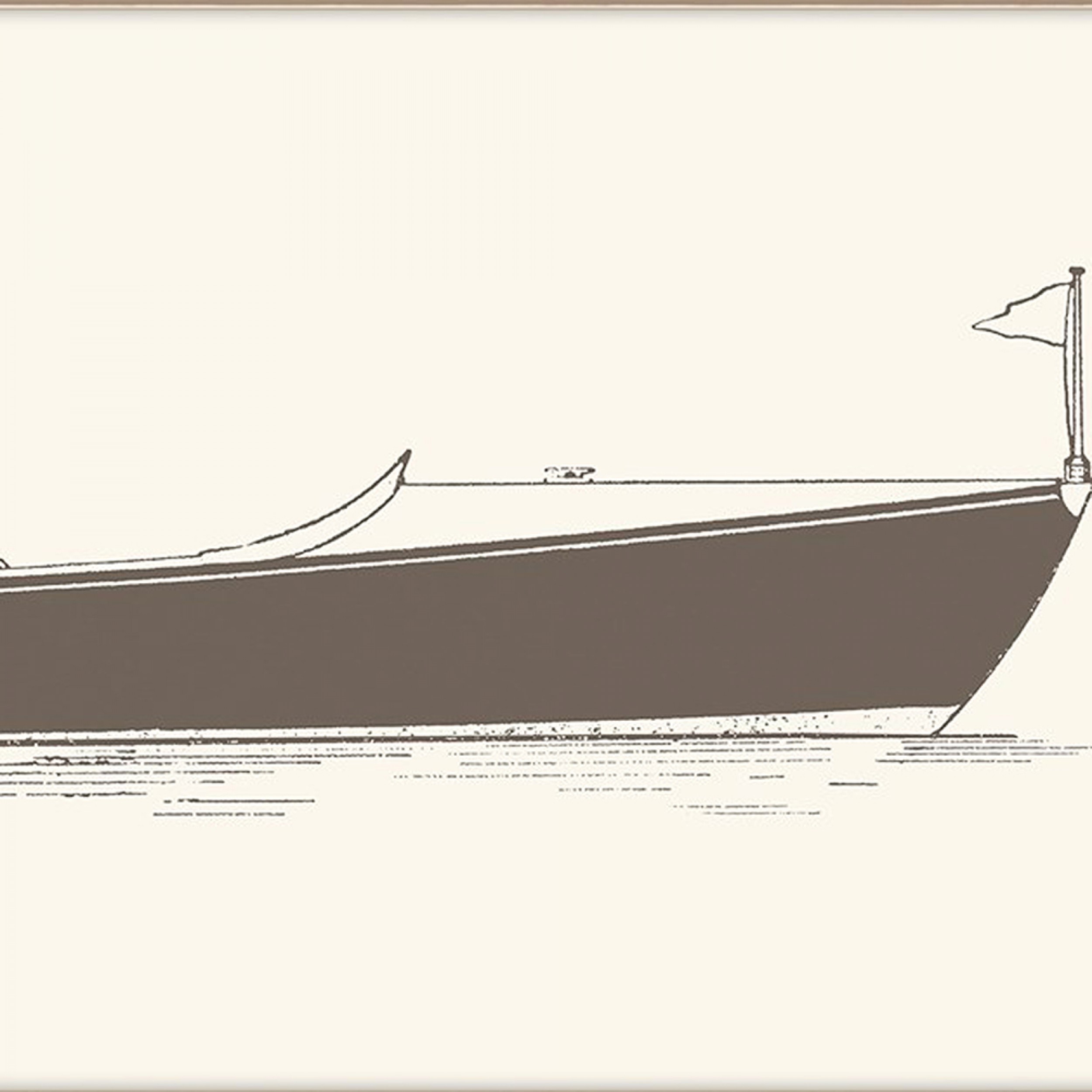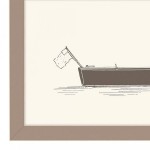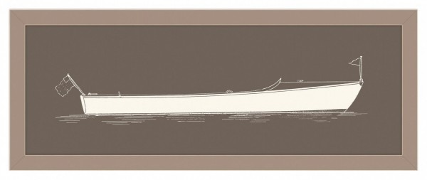 "Long Boat I", black and white Giclee art print framed in a cappuccino colored frame (See also: 060791)