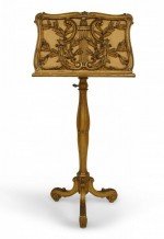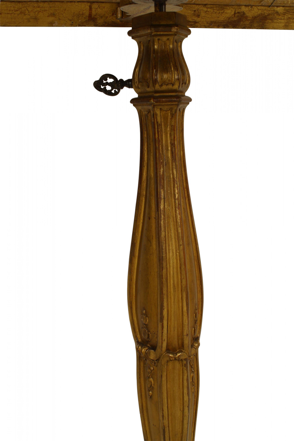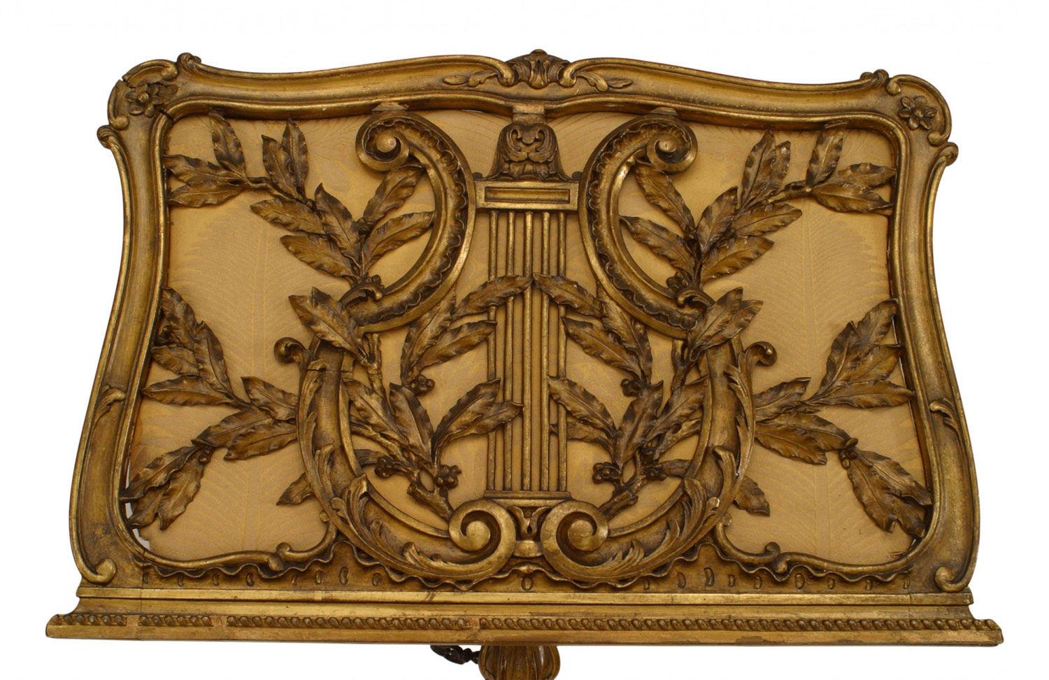 French Louis XV style (19th Century) gilt carved adjustable pedestal base double sided (duet) music stand with lyre design..