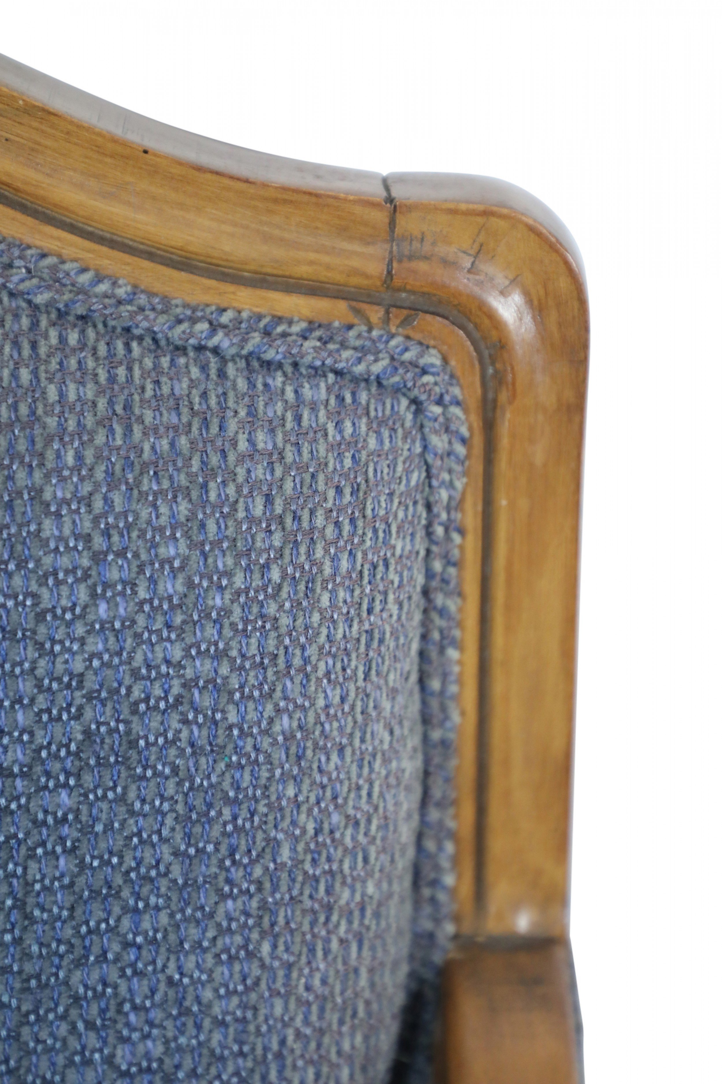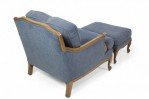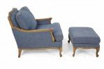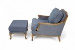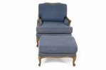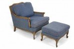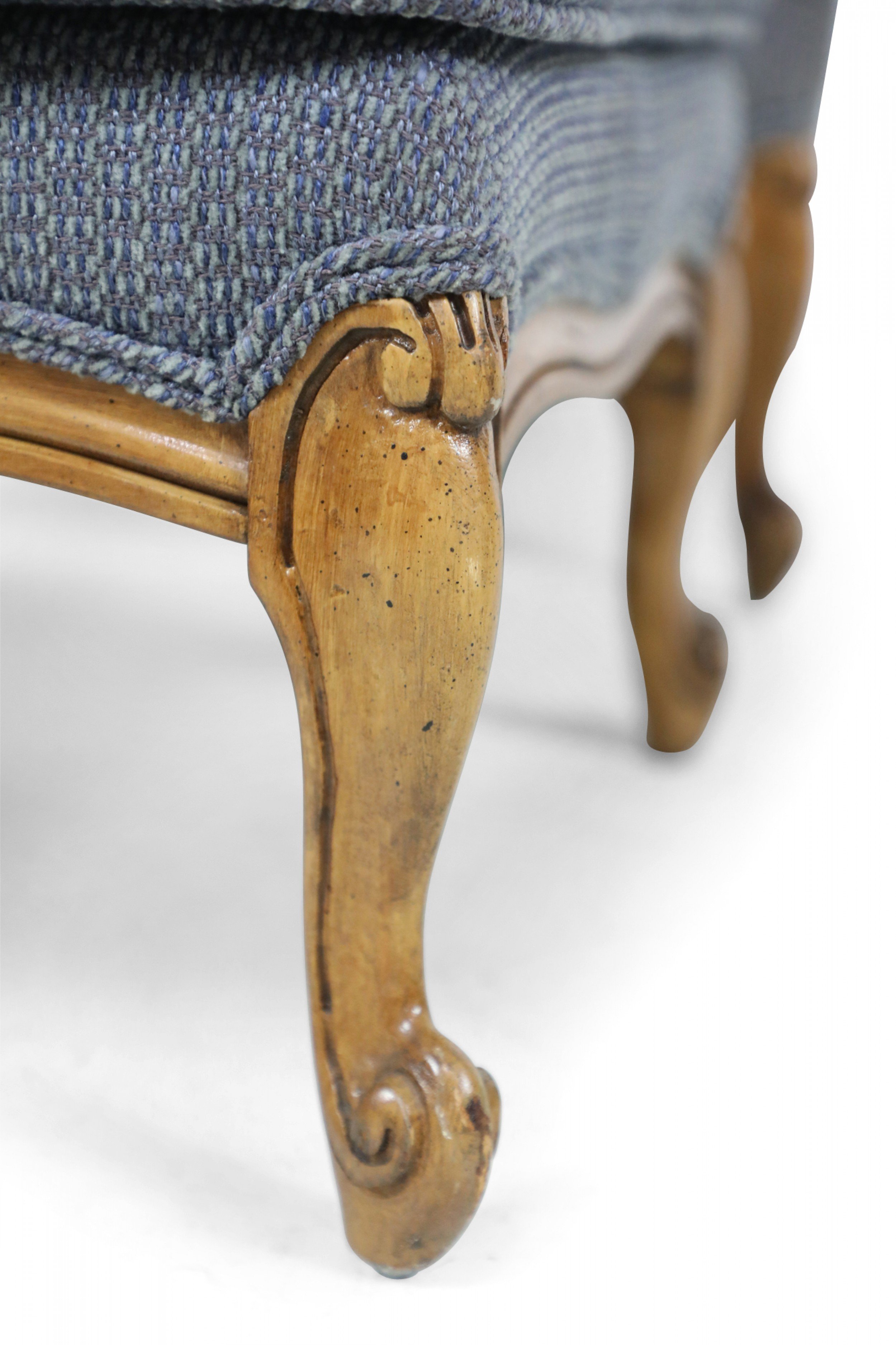 French Louis XV-Style Walnut and Navy Upholstered Bergere and Ottoman