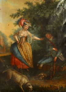Louis XVI Oil Painting of Lady Enticing Sleeping Man
