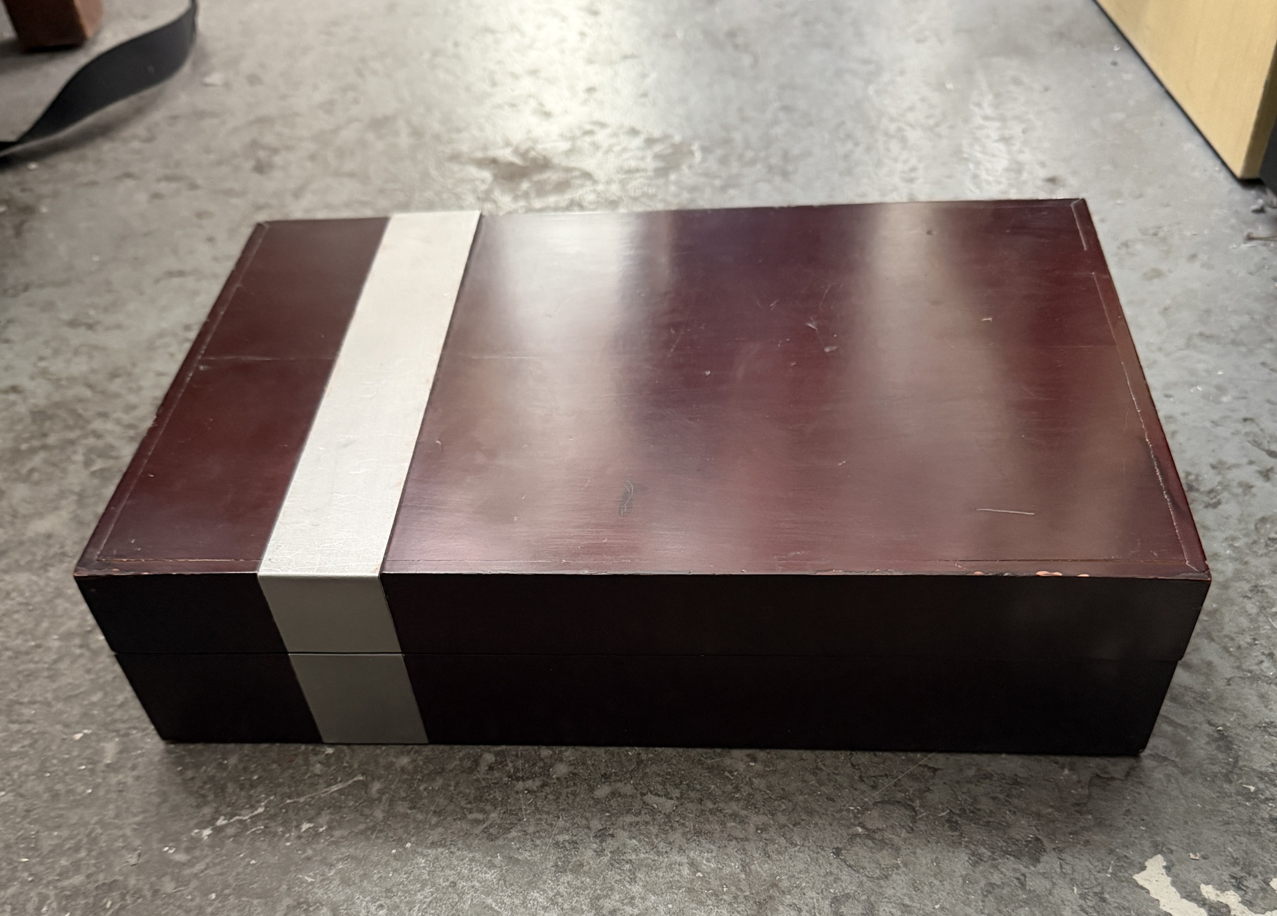 American Mid-Century rectangular mahogany box with an inlaid aluminum band