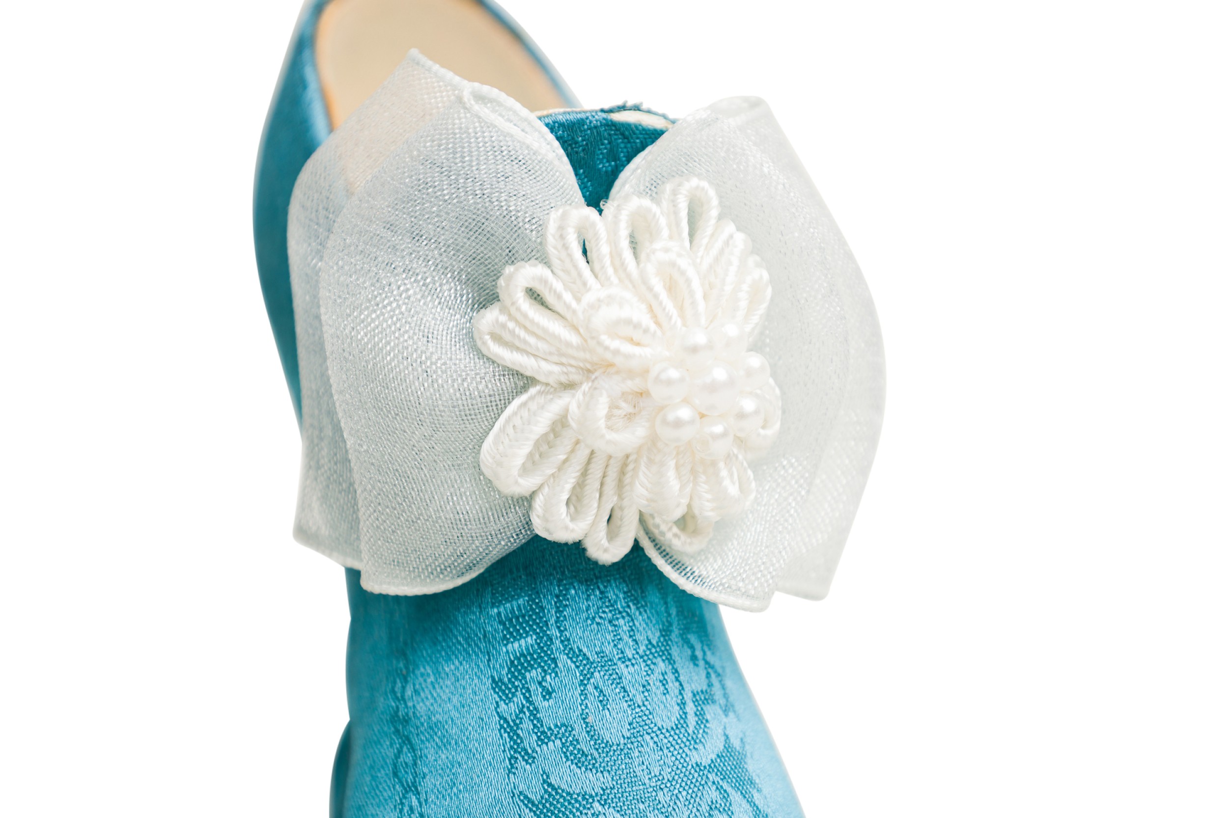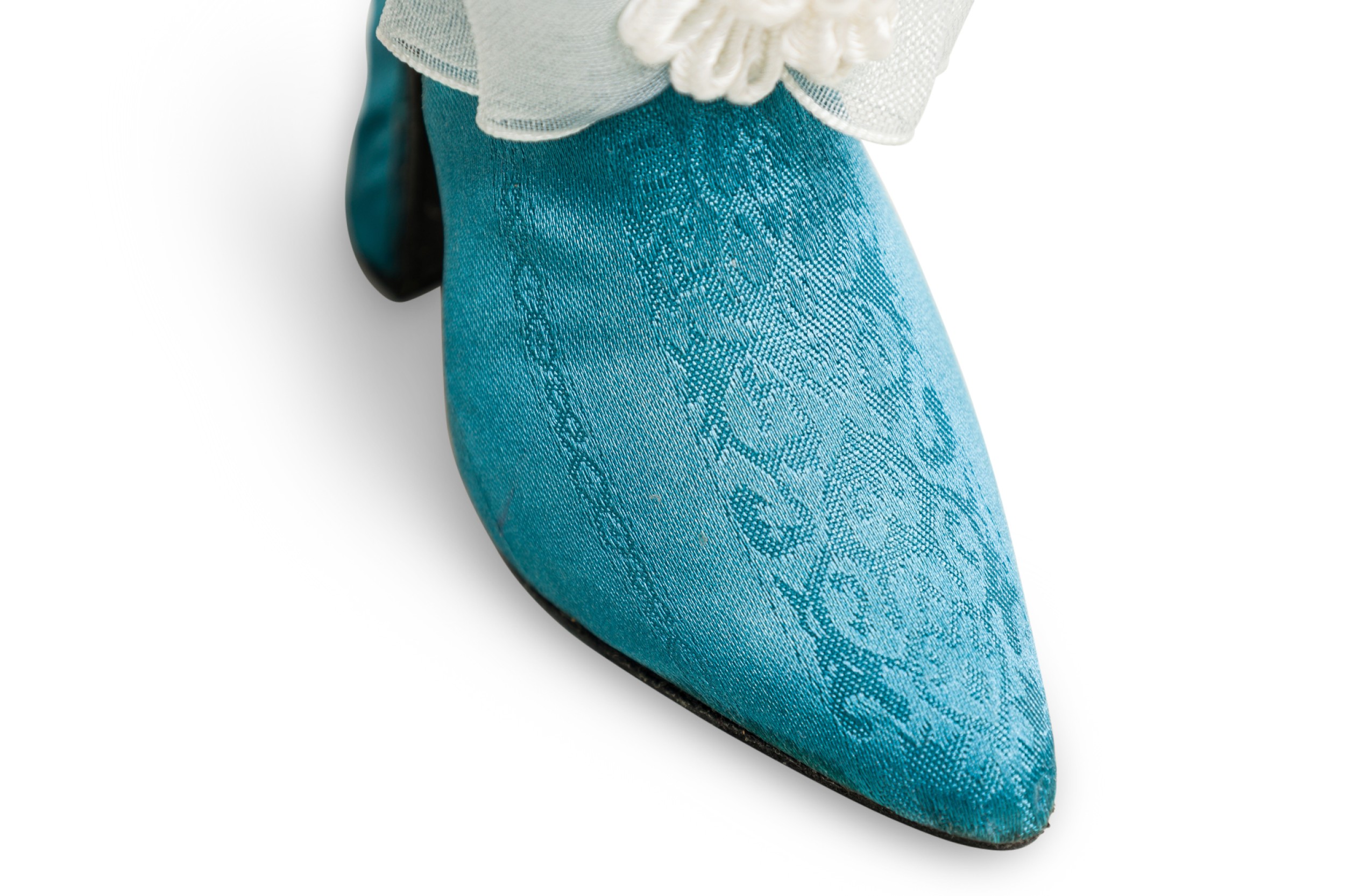 Mid-Century Continental small figurine blue shoe with white and silver bow (Collection NWL7892A-M).
