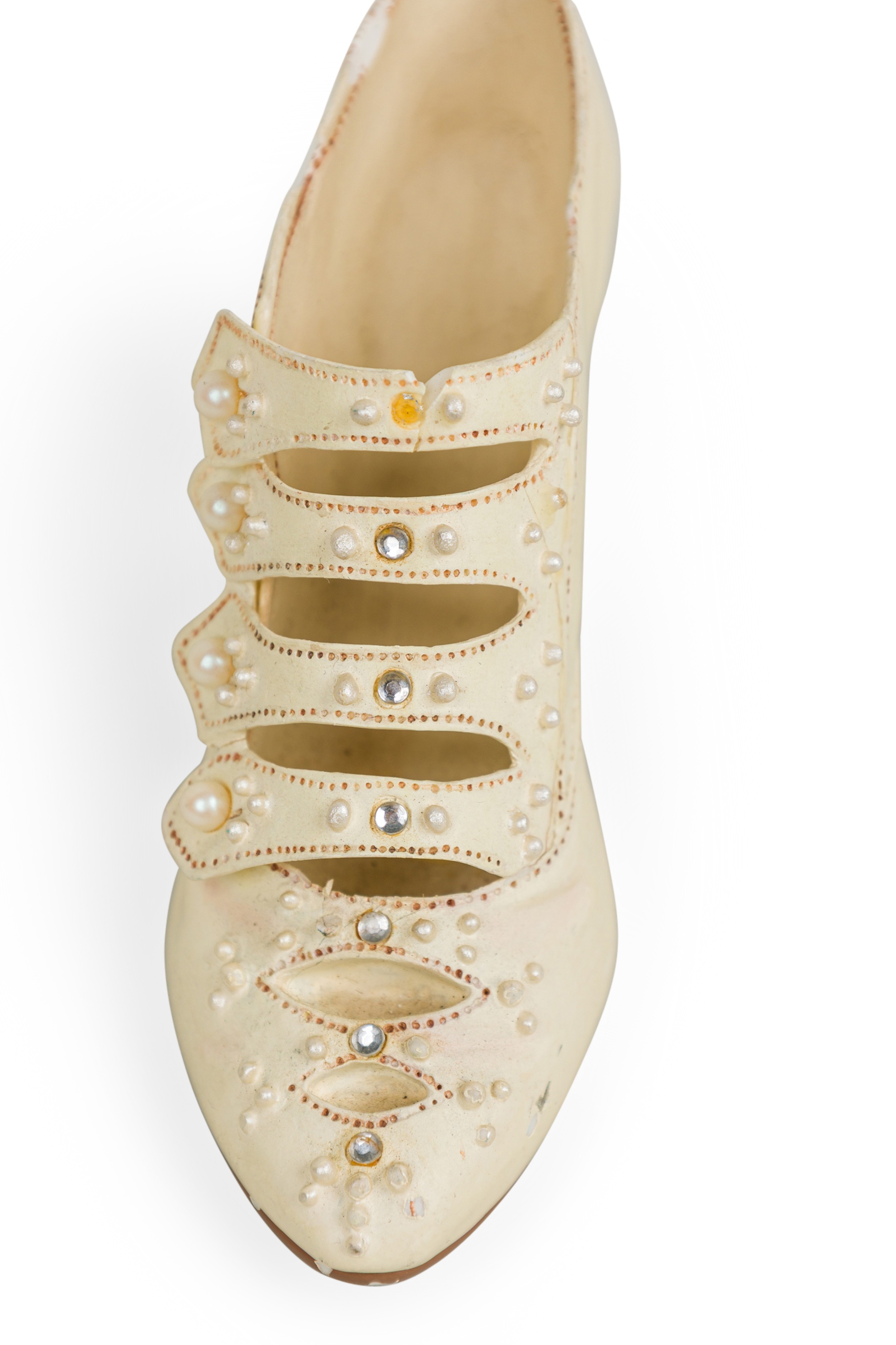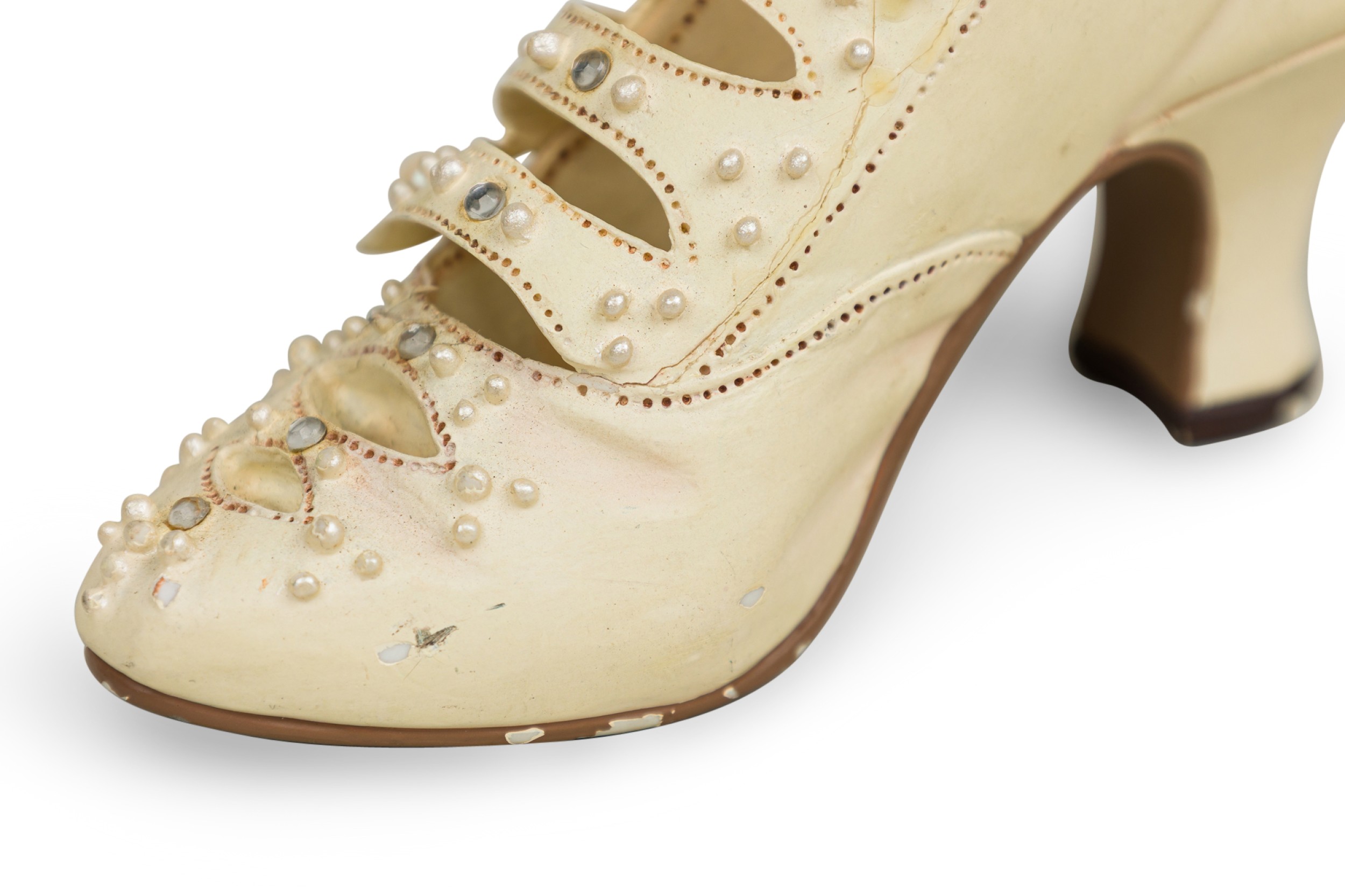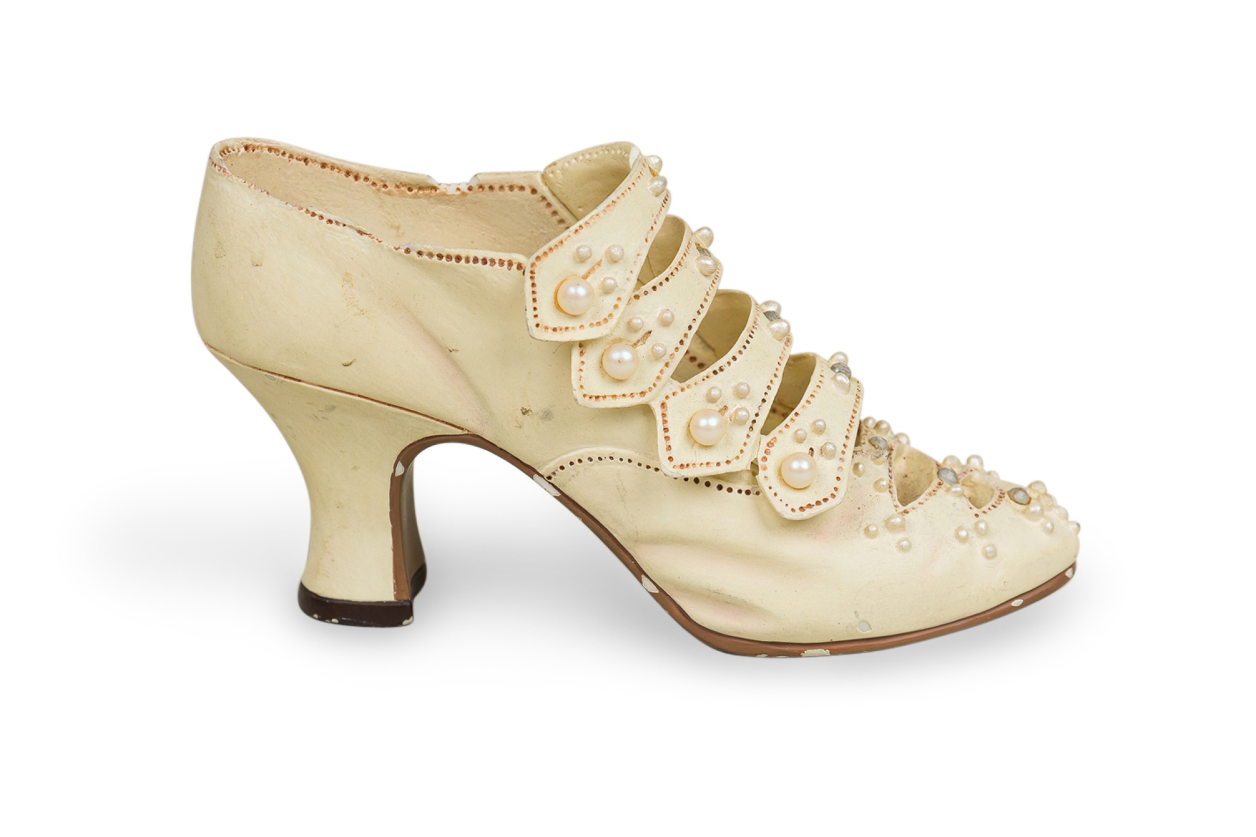 Mid-Continental small figurine of a cream shoe with straps and pearls
