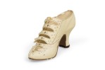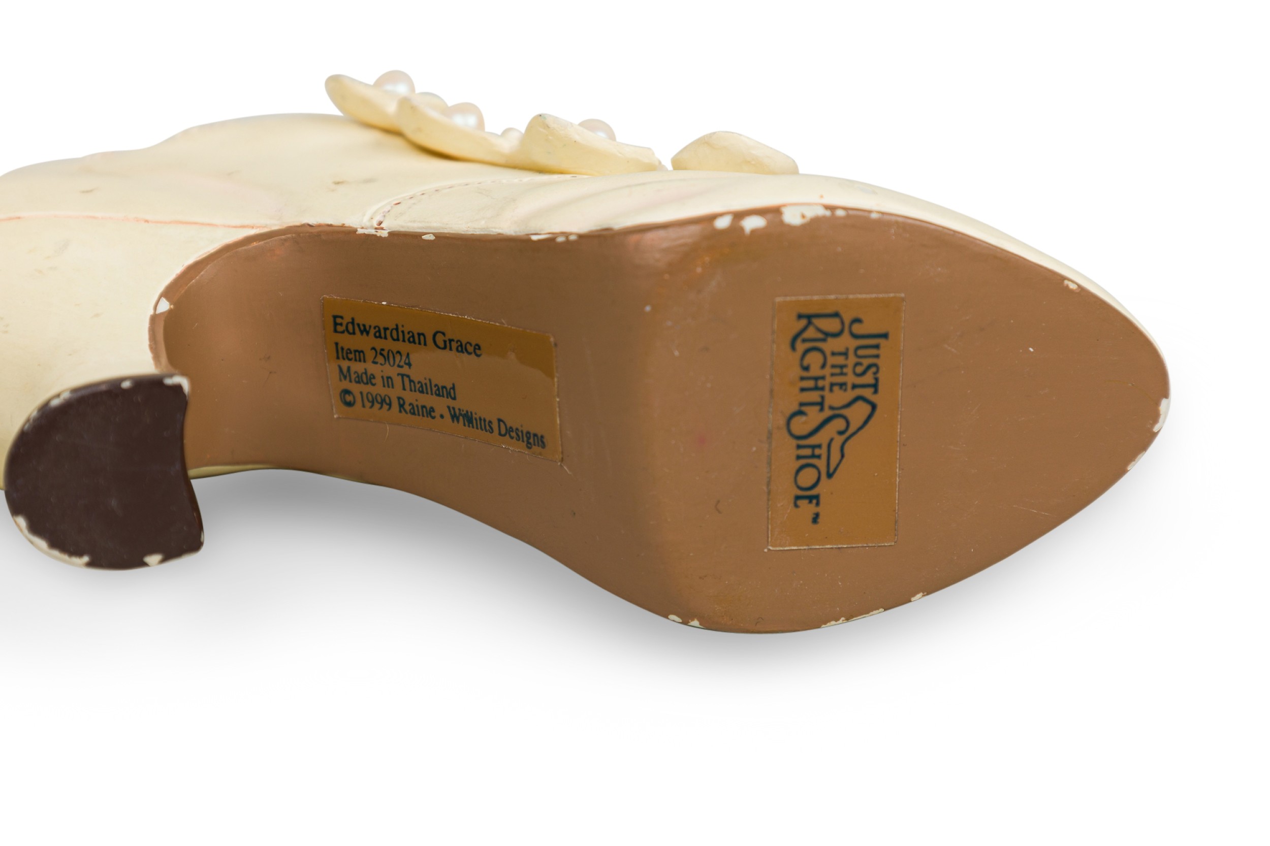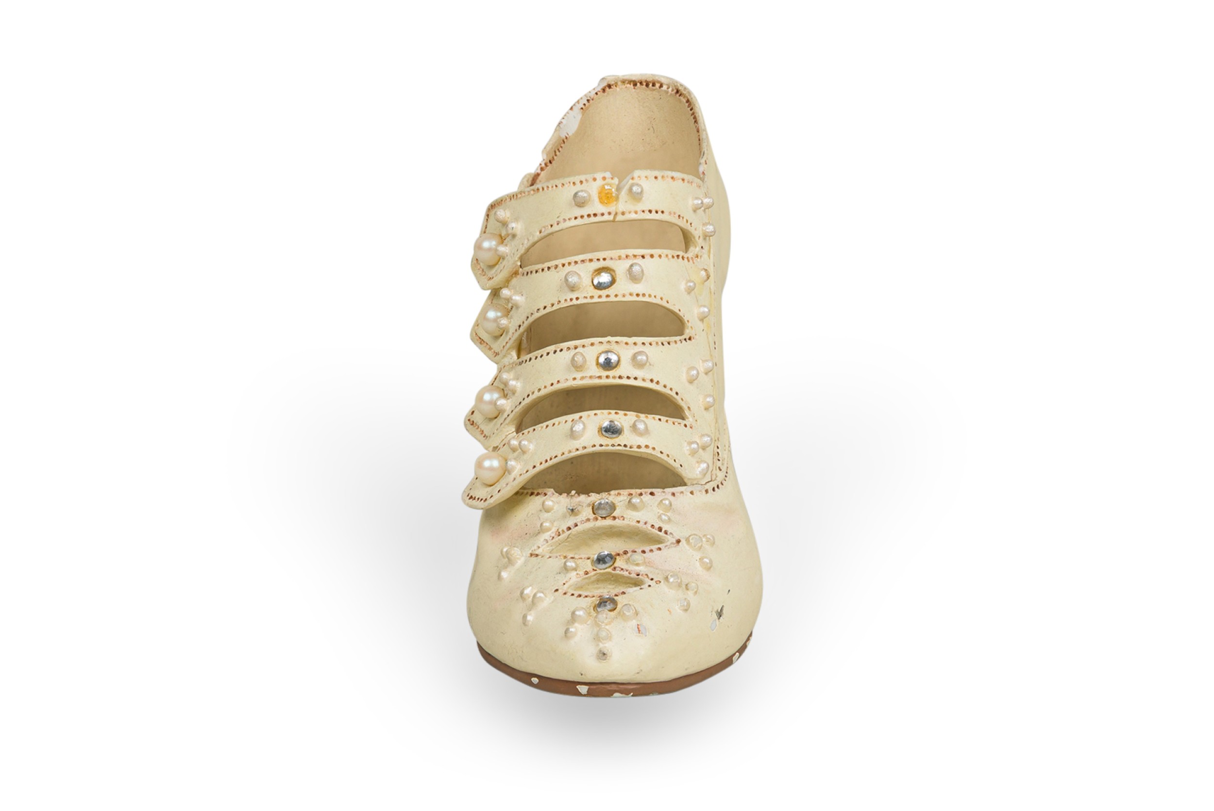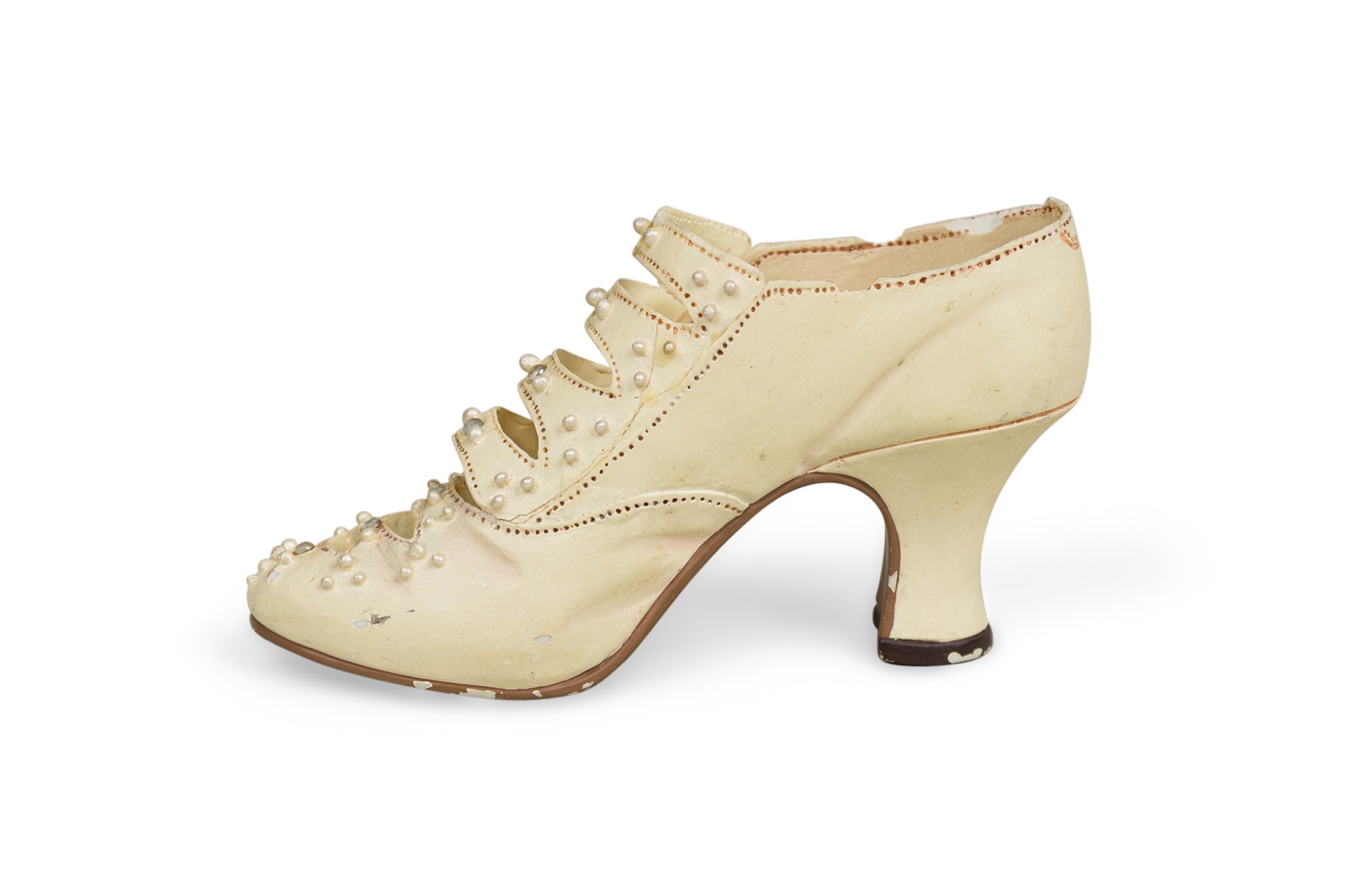 Mid-Continental small figurine of a cream shoe with straps and pearls