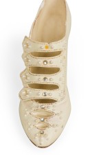 Mid-Continental small figurine of a cream shoe with straps and pearls.