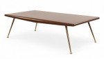 American Mid-Century rectangular walnut coffee table with brass legs (T.H. ROBSJOHN-GIBBINGS, model 1786 for Widdicomb)..