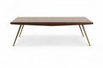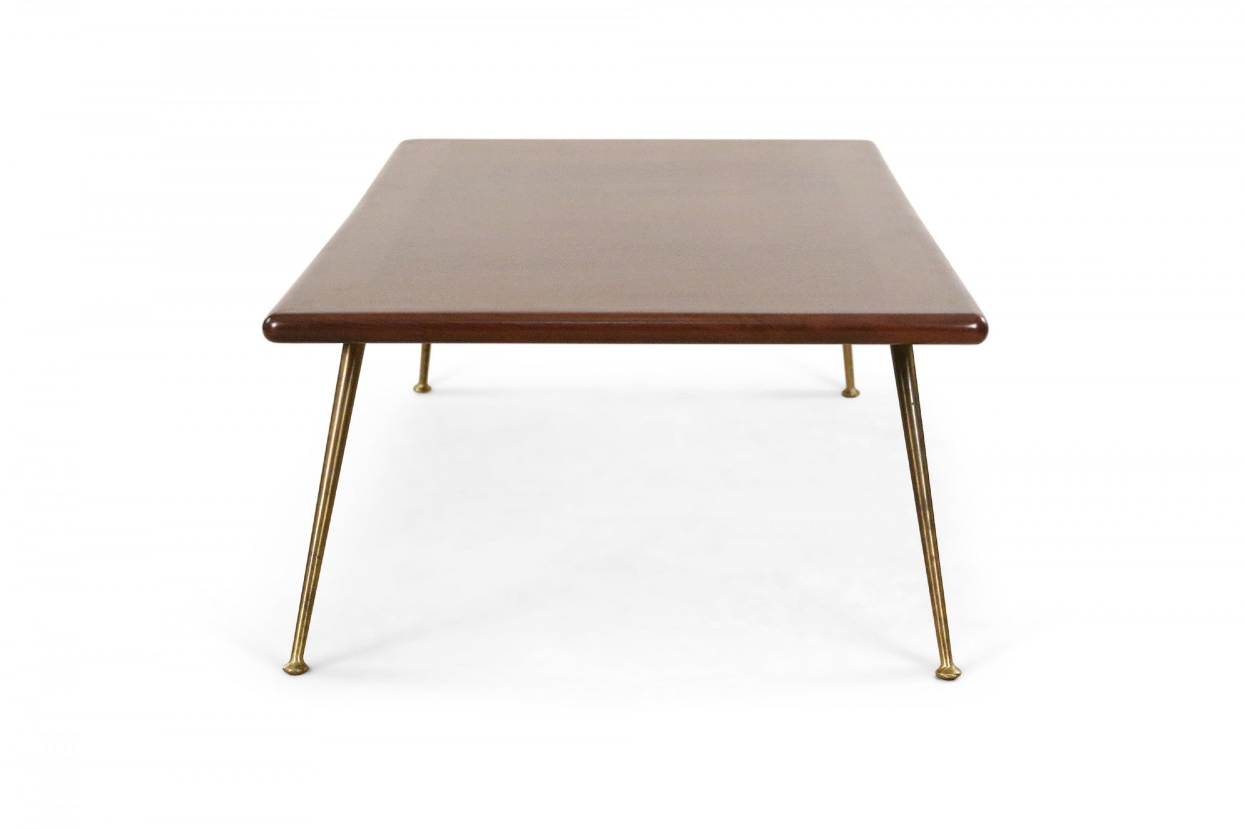 American Mid-Century rectangular walnut coffee table with brass legs (T.H. ROBSJOHN-GIBBINGS, model 1786 for Widdicomb).