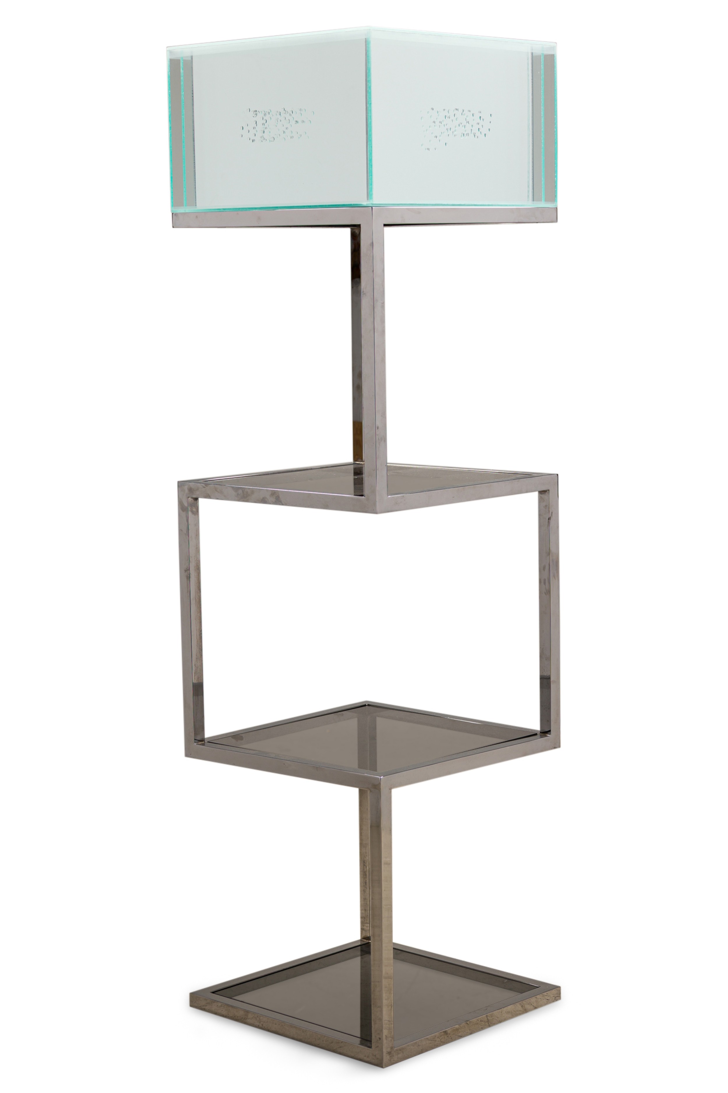 Style: Mid-Century Materials & Techniques: Chrome, crystal, glass, mirror, plexiglass Category: Cabinets & Case Goods New