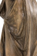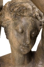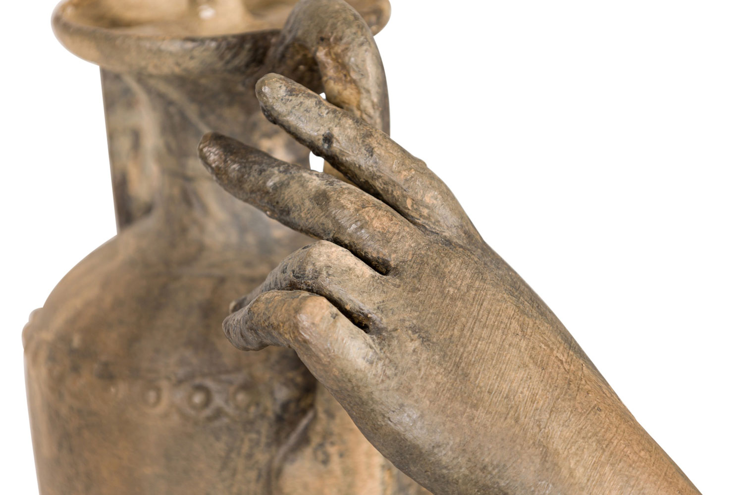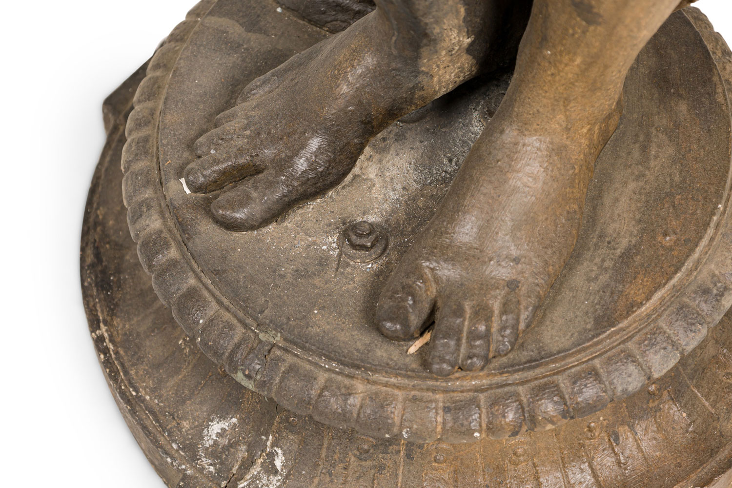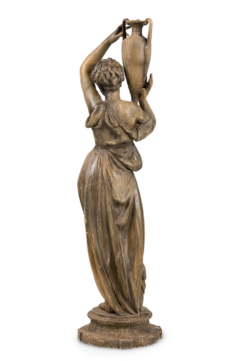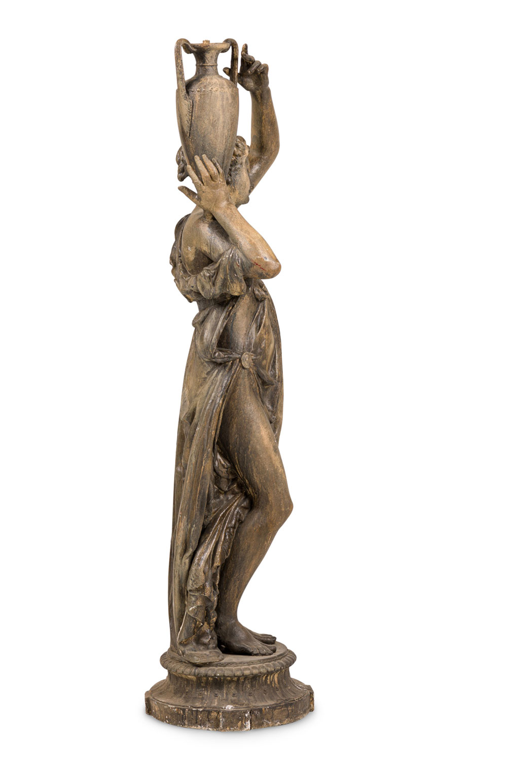 Outdoor painted iron large classic Greek woman supporting an urn on her shoulder (19/20th Cent) (Please note this piece has been outdoors and has since become brown and gray coloring).