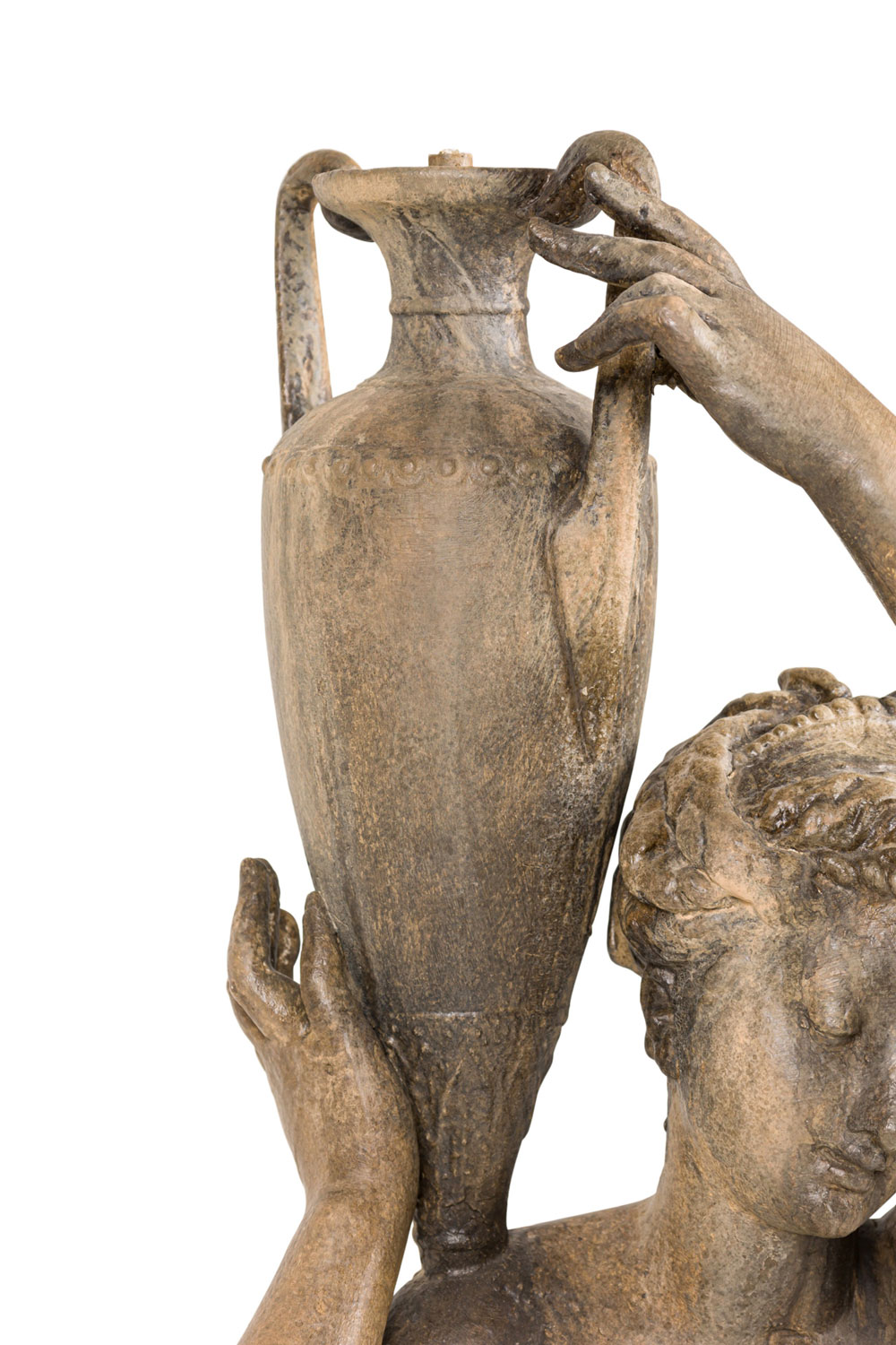 Outdoor painted iron large classic Greek woman supporting an urn on her shoulder (19/20th Cent) (Please note this piece has been outdoors and has since become brown and gray coloring)