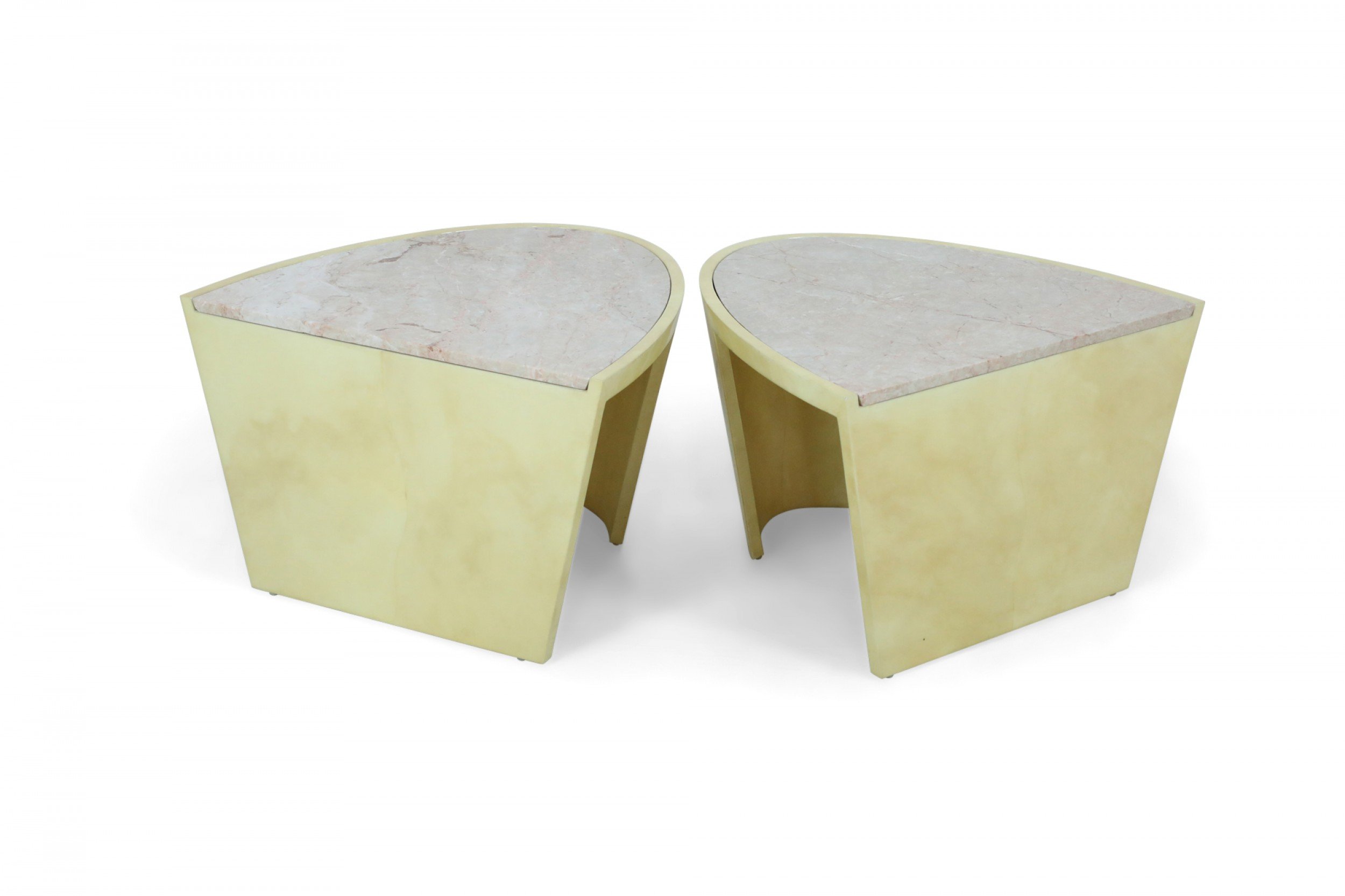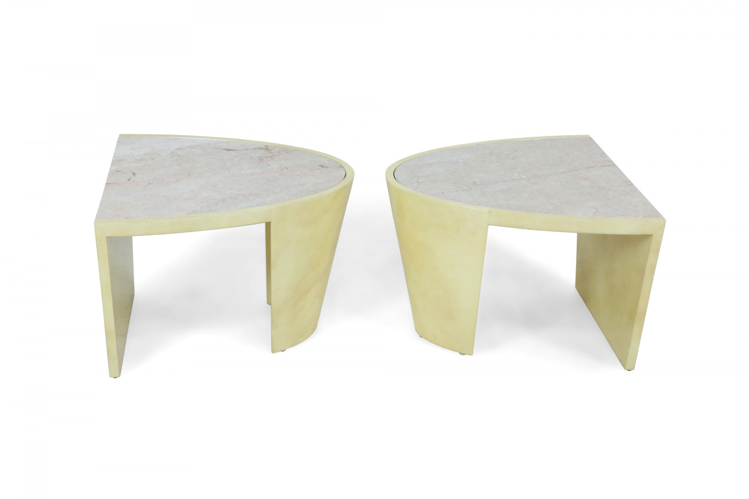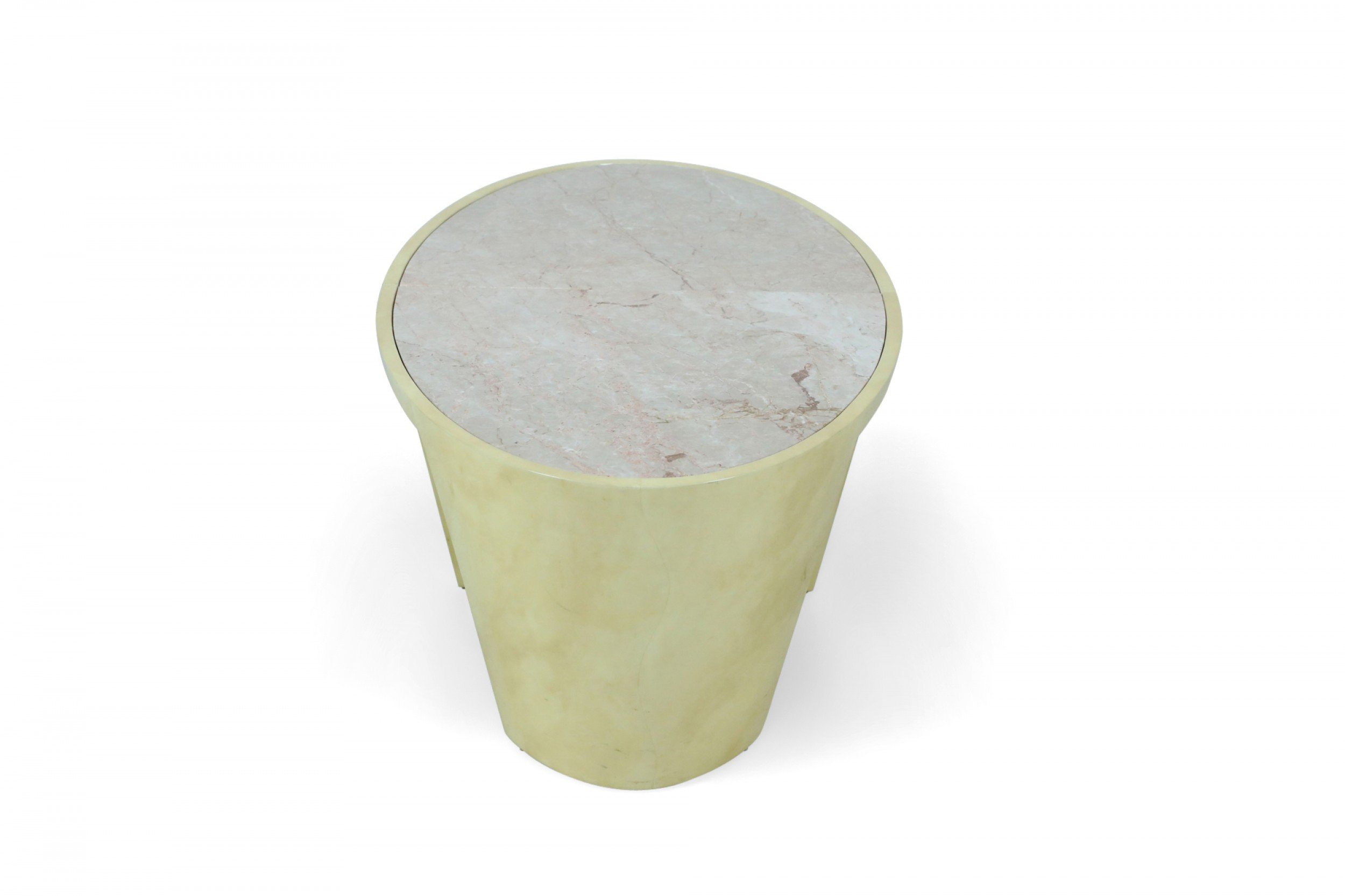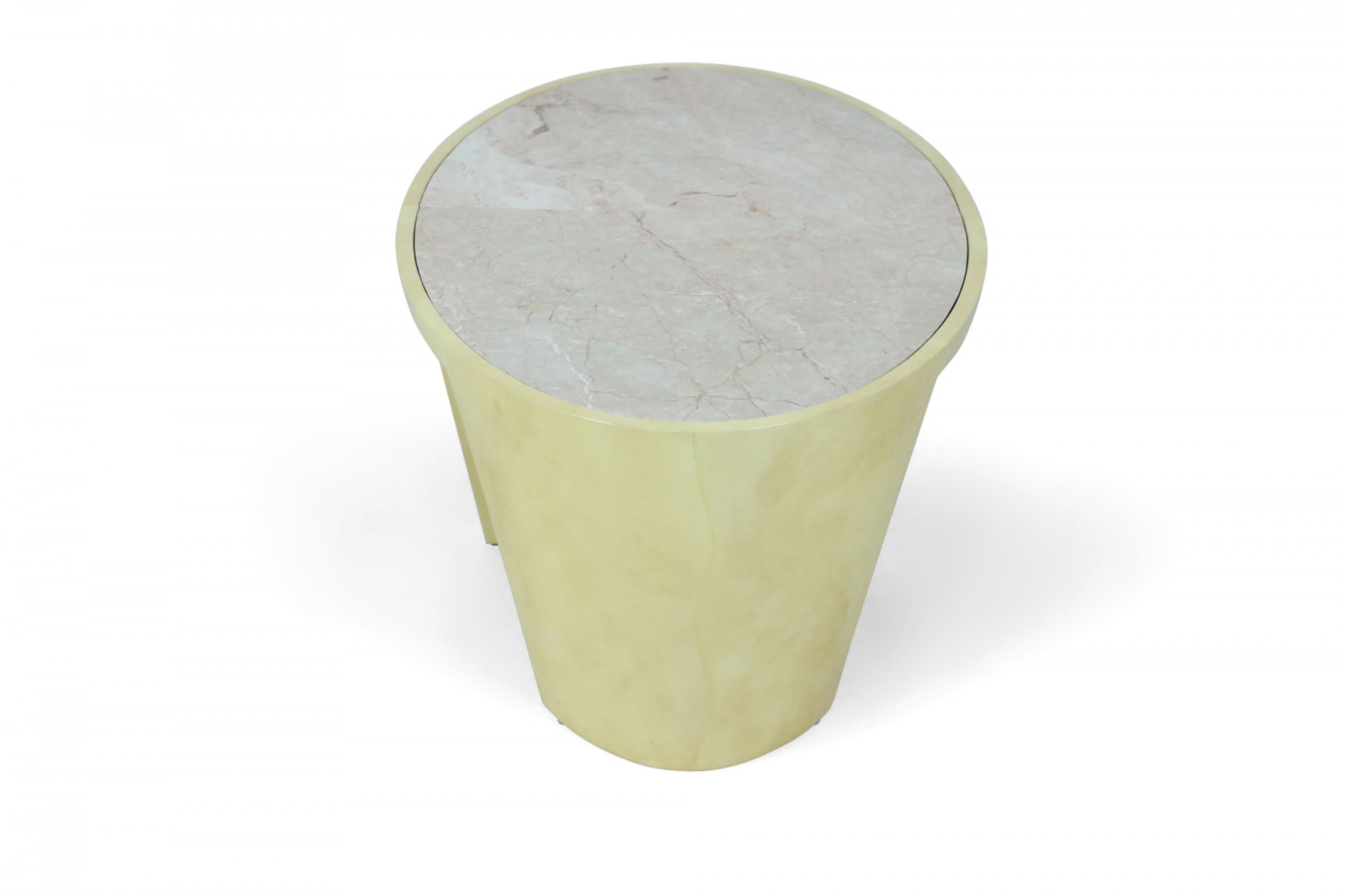Style: Contemporary/Post-War Design Materials & Techniques: Marble, parchment, wood, beech, beechwood, lacquered Category: Tables Condition: Minor chips and repairs.