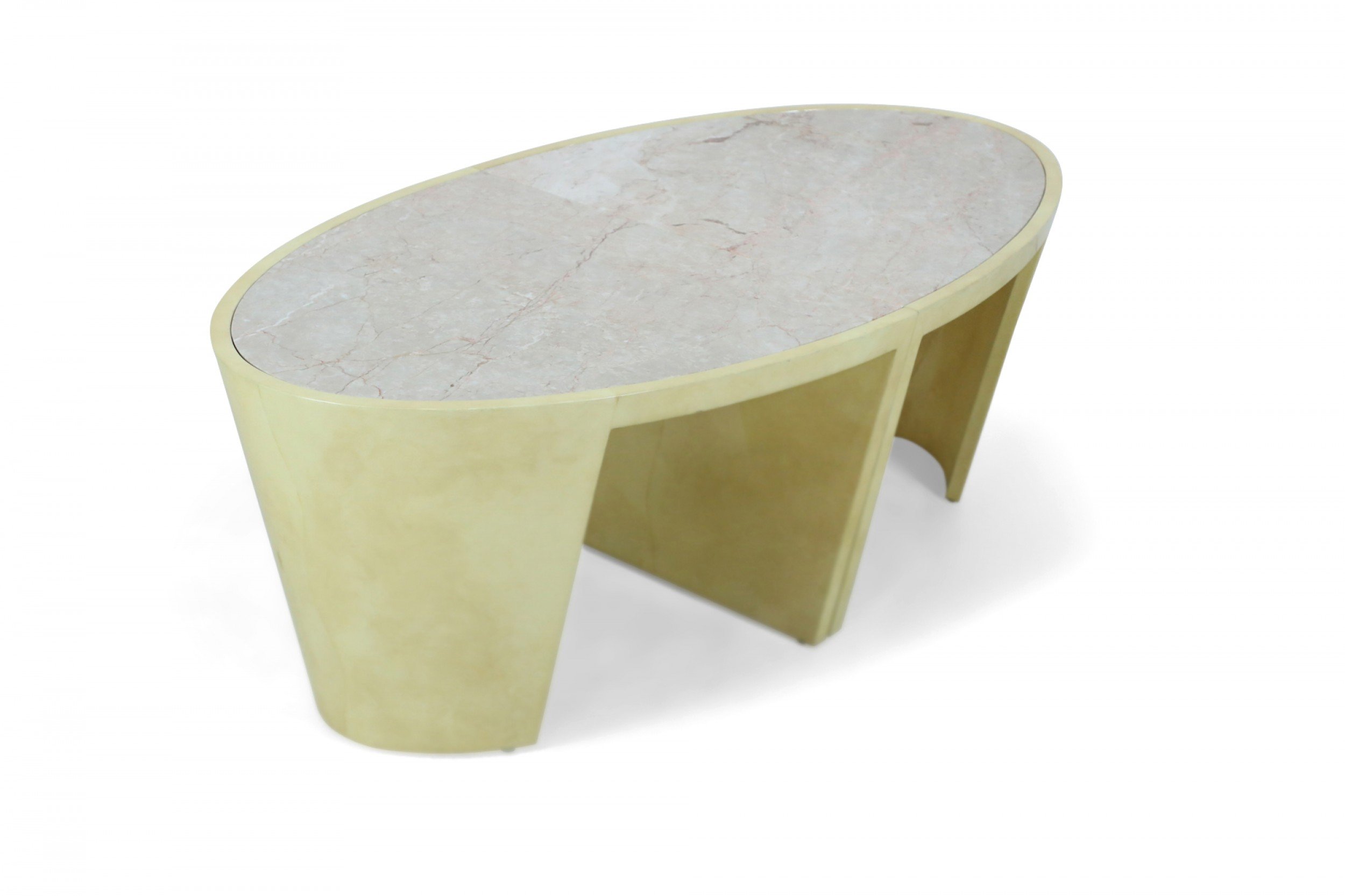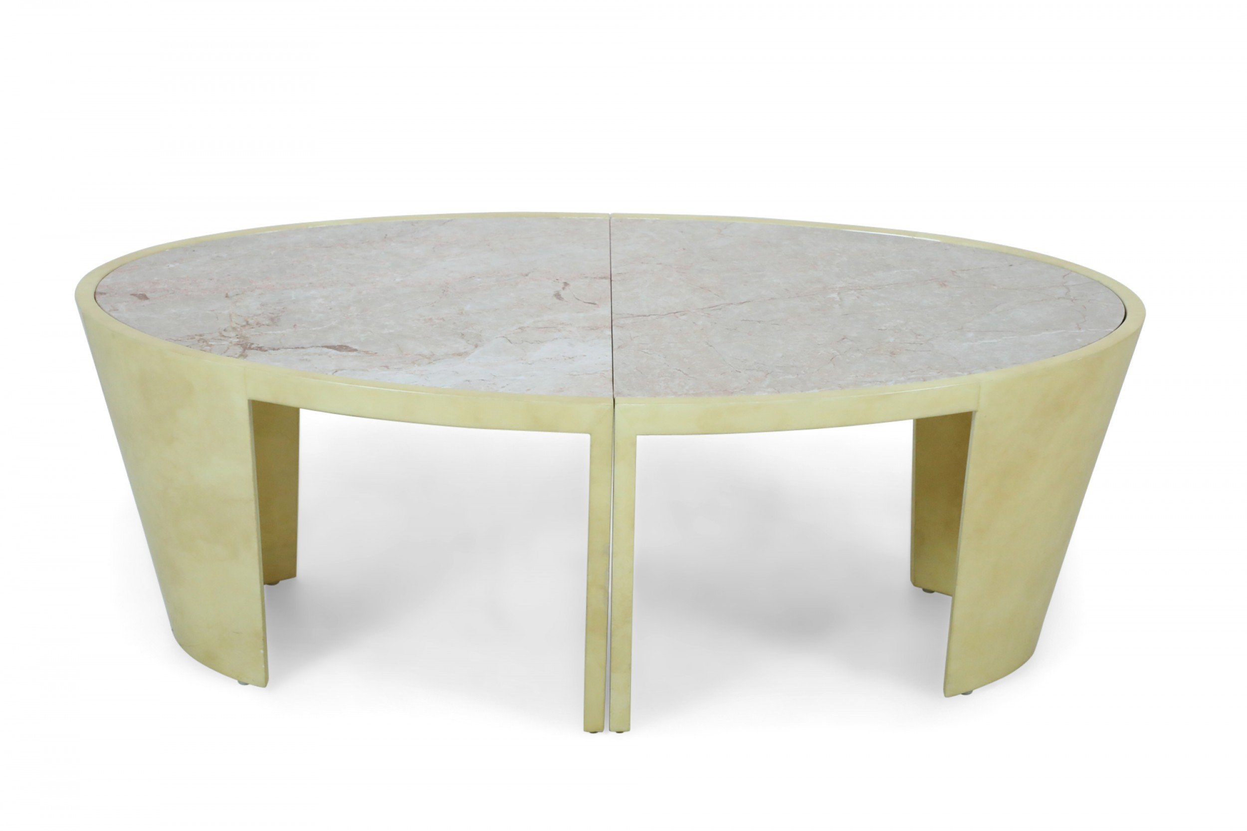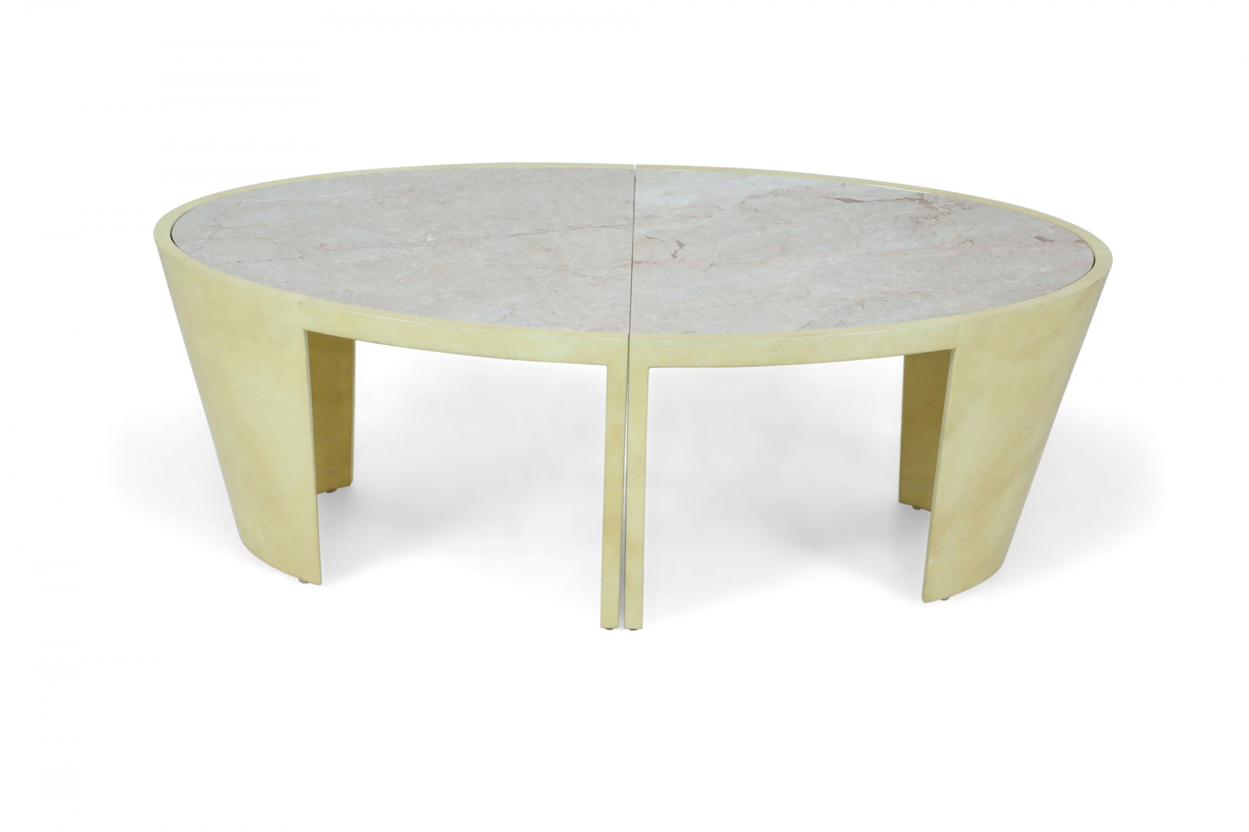 Italian Contemporary Two-Piece Oval Parchment and Marble Coffee Table