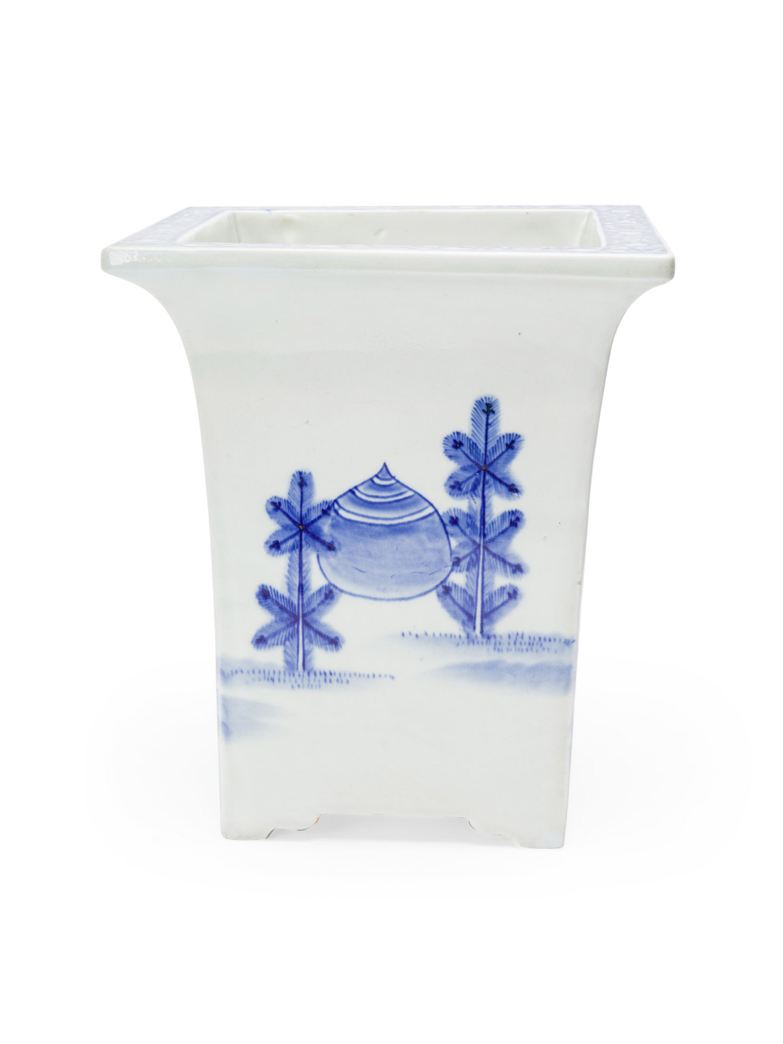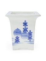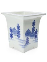 PAIR of Asian Chinese-style (19/20th Century) square blue and white porcelain cachepot. (PRICED AS PAIR)