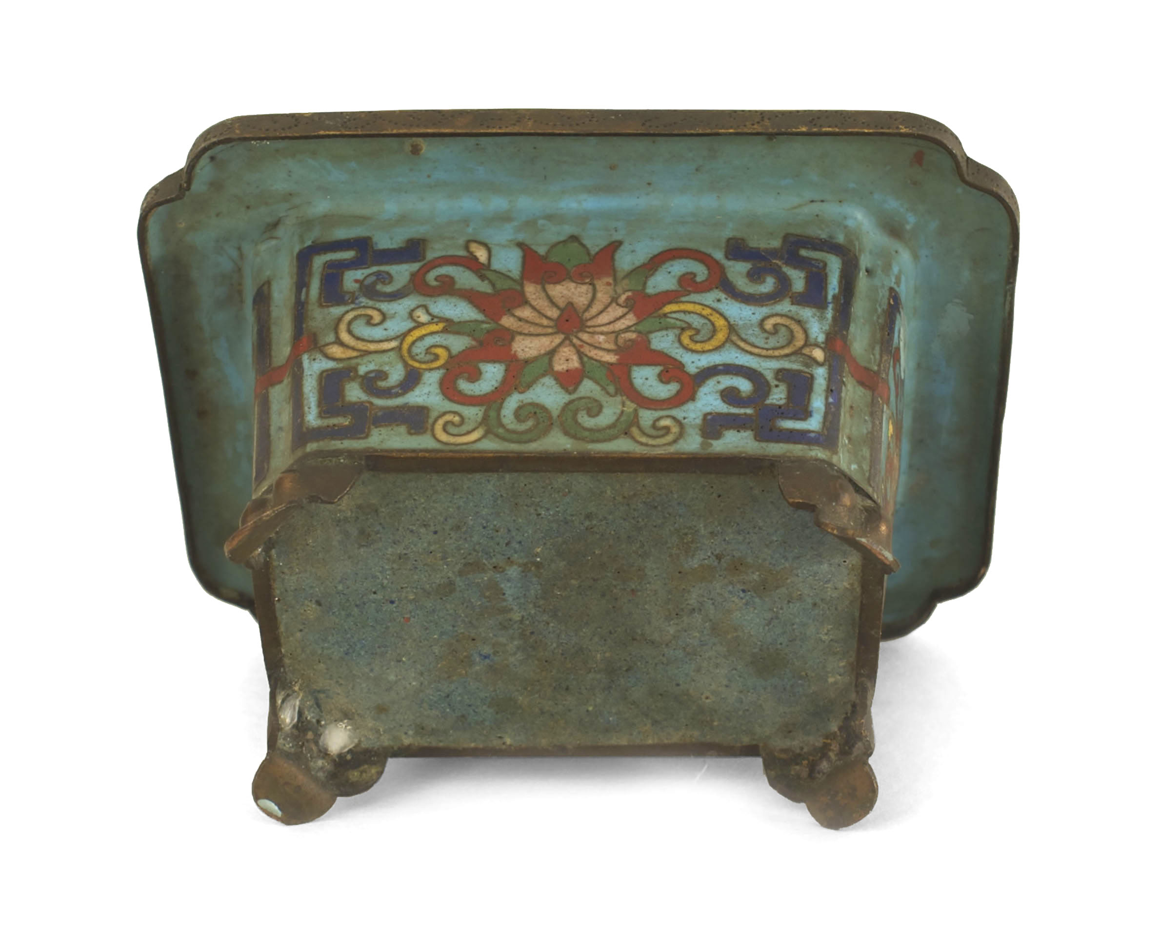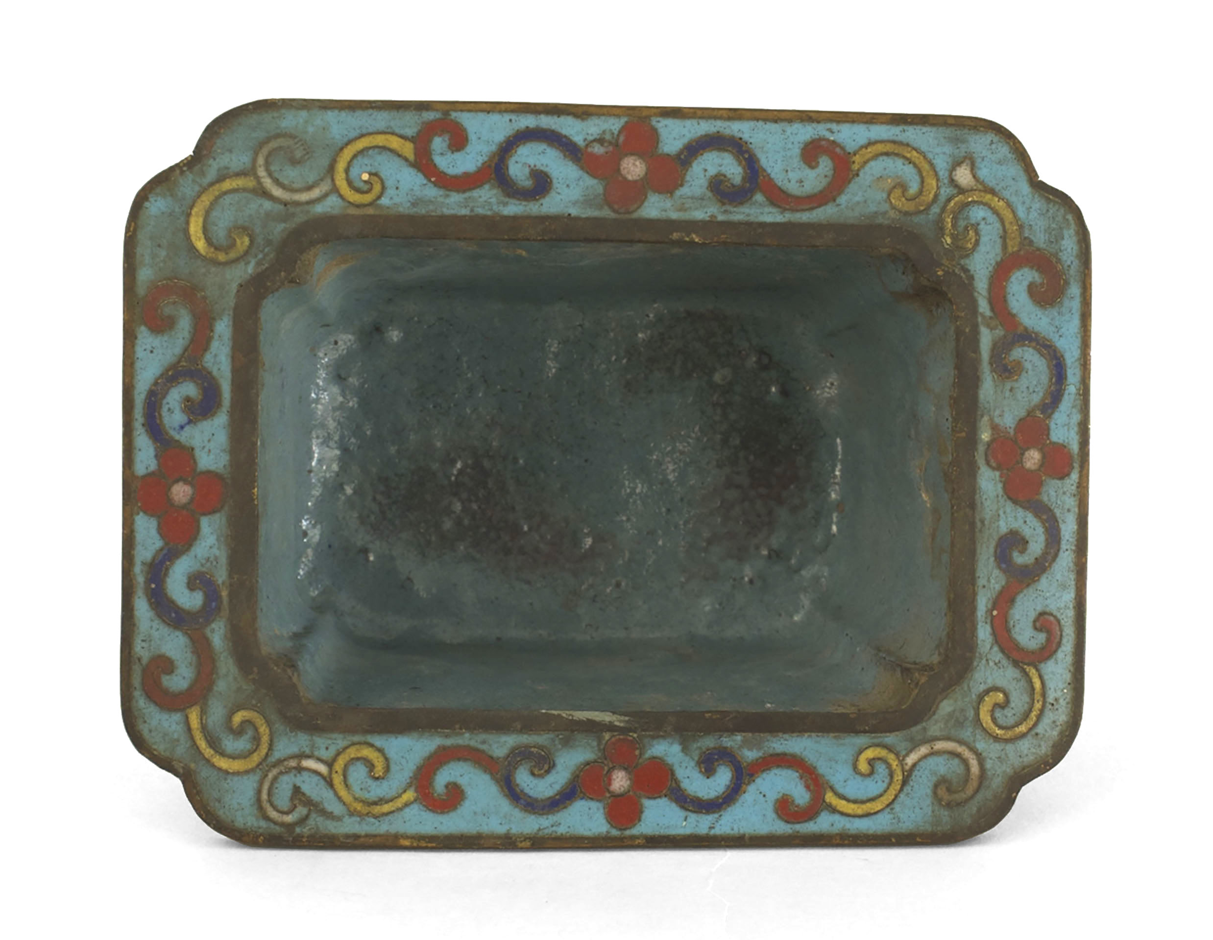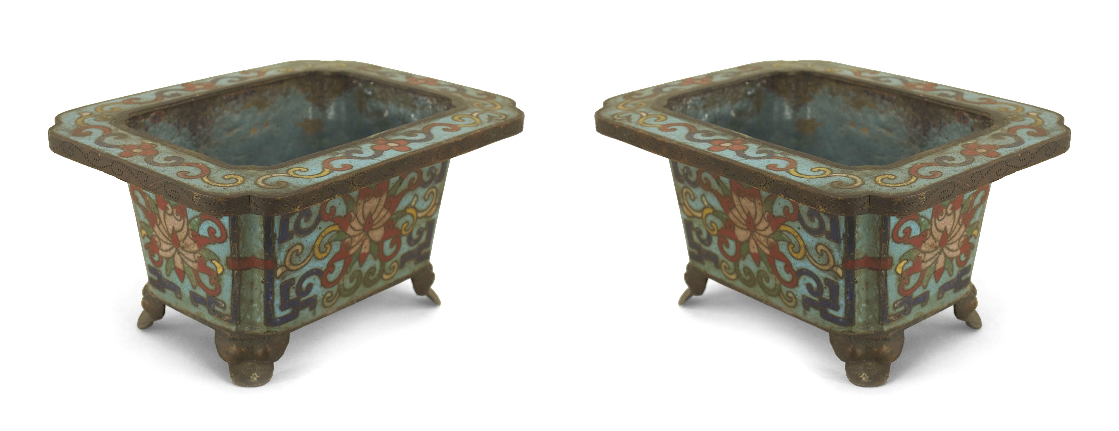 PAIR of Asian Chinese (19/20th Century) blue and multi-colored cloisonné small rectangular cachepots. (PRICED AS PAIR)