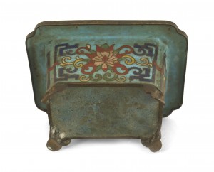 PAIR of Asian Chinese (19/20th Century) blue and multi-colored cloisonné small rectangular cachepots. (PRICED AS PAIR).
