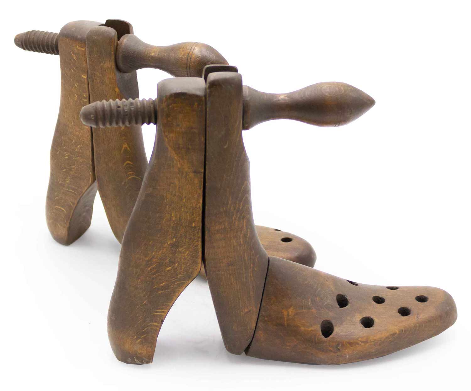 PAIR of English Country style pine adjustable boot molds with screw design top..