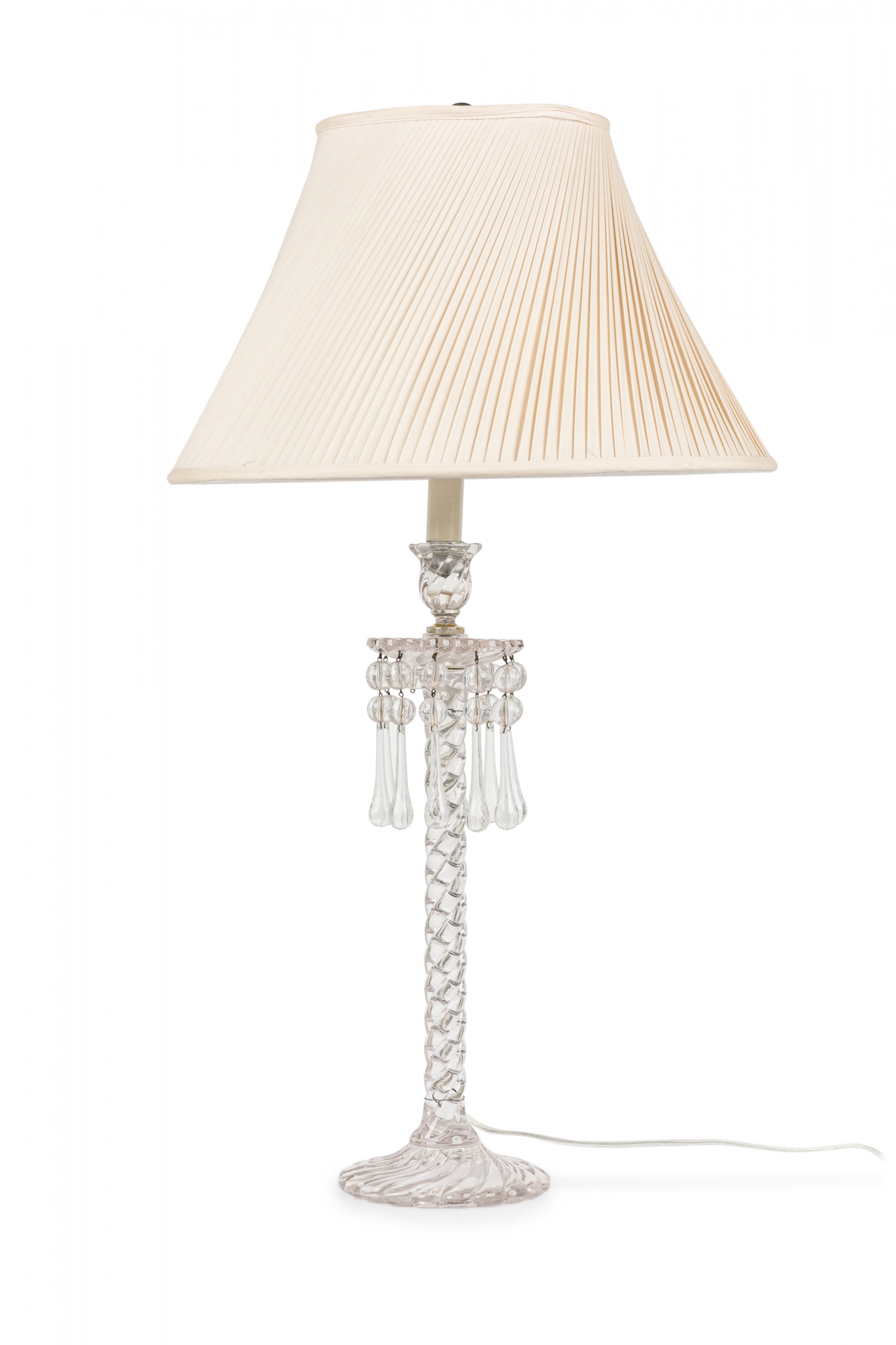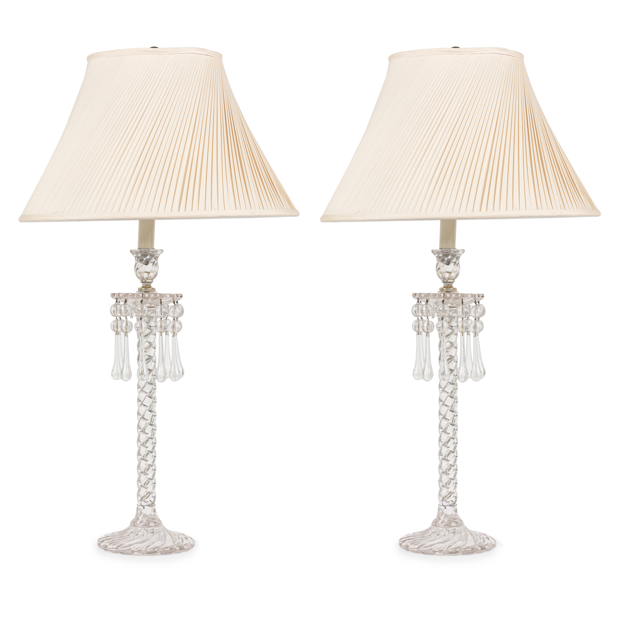 Pair of English Victorian Cut Crystal Glass Table Lamps with Pleated Swirl Shades