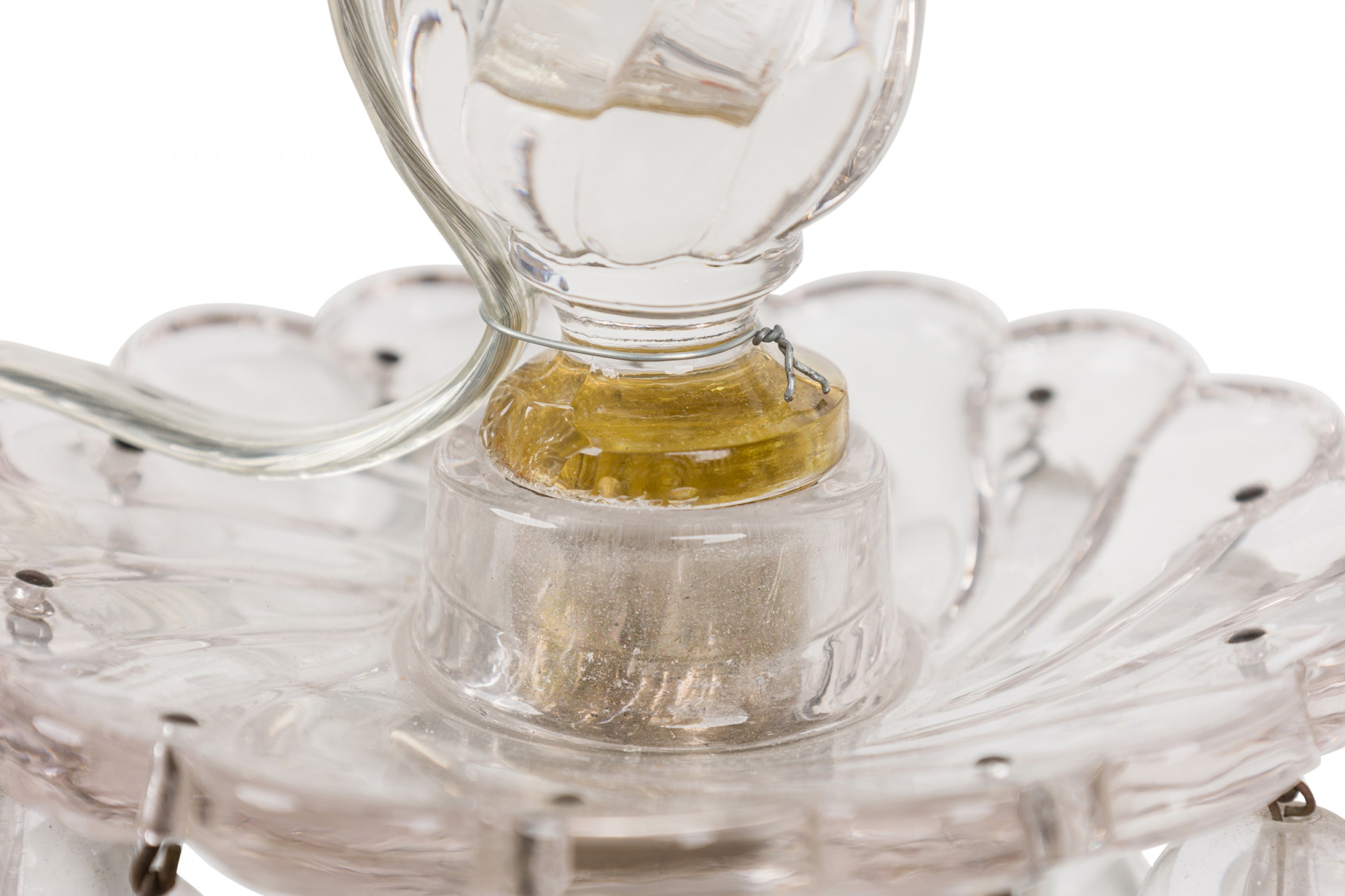 Style: English Materials & Techniques: Fabric, glass, metal Category: Lighting Good; Wear consistent with age and use
