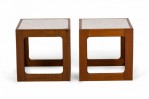 Pair of Adrian Pearsall American Mid-Century Open Cube Wood and Faux White Marble End / Side Tables