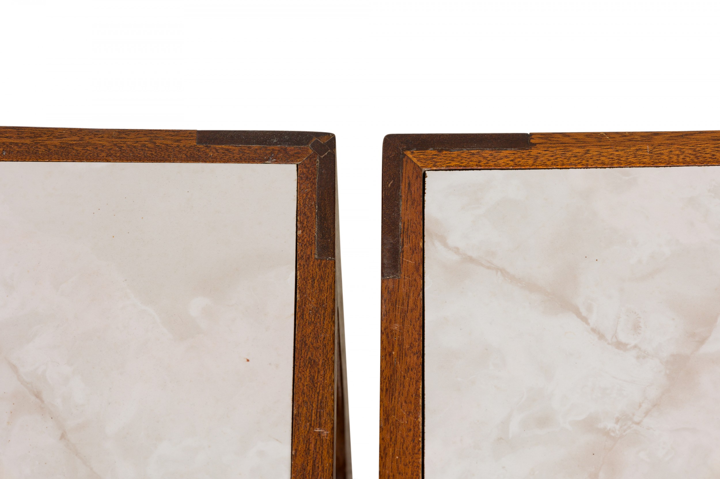 Style: Mid-Century Materials & Techniques: Laminate, wood Category: Tables Condition: Chipping to corners of faux marble tops. Good; Wear consistent with age and use