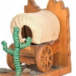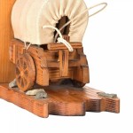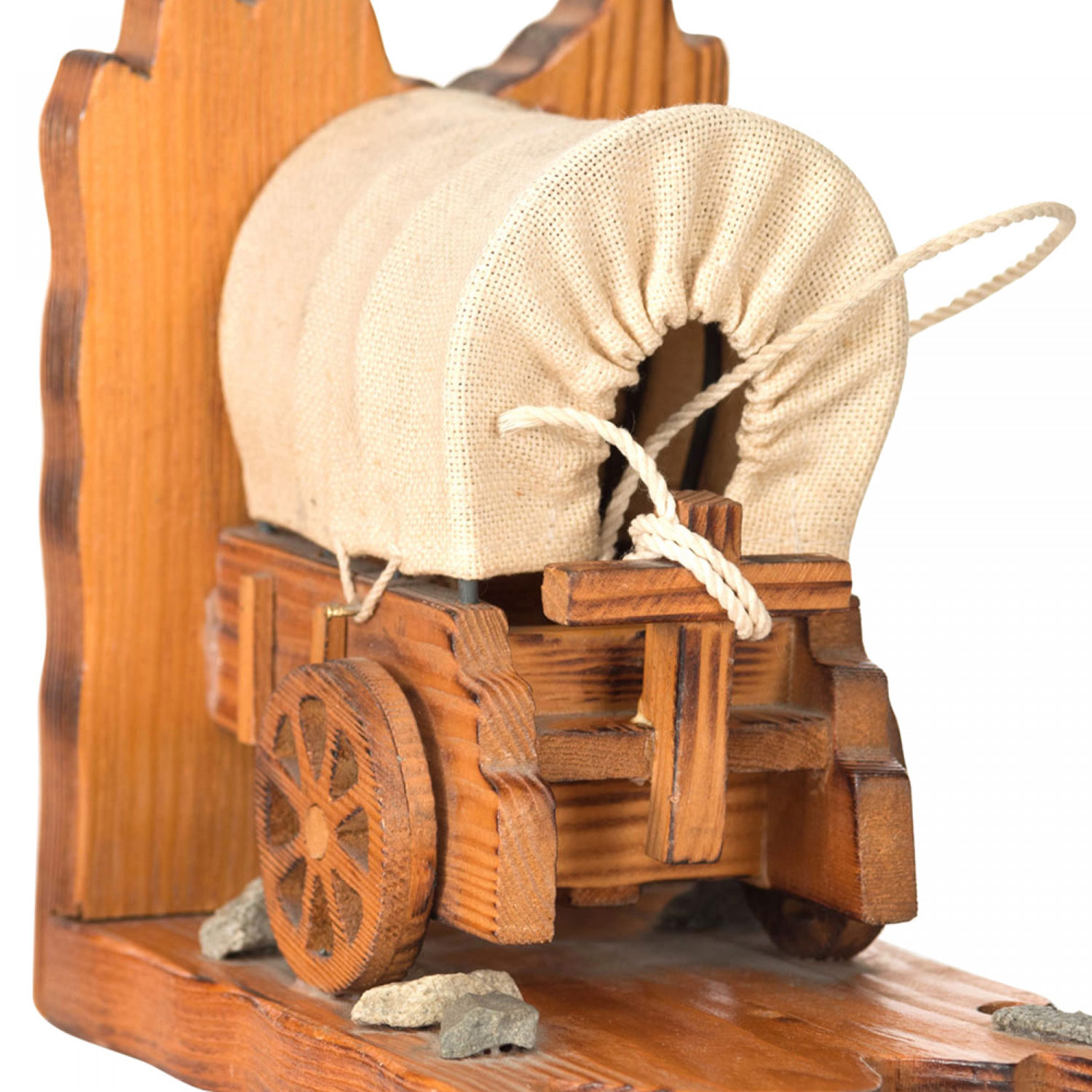 PAIR of American Western Rustic-style wood covered wagon bookends. (PRICED AS PAIR)