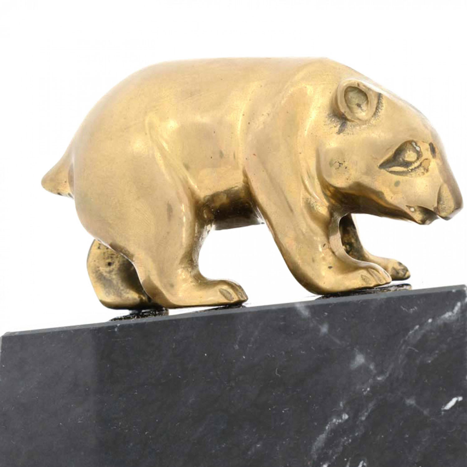PAIR of American Art Deco bookends with a brass bull and bear mounted on a black marble pedestal plinth (PRICED AS PAIR).