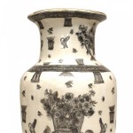Style: Asian Materials & Techniques: Porcelain Category: Accessories/Décor/Bric-a-Brac Condition: One vase has cracks that have been repaired. Good; Wear consistent with age and use