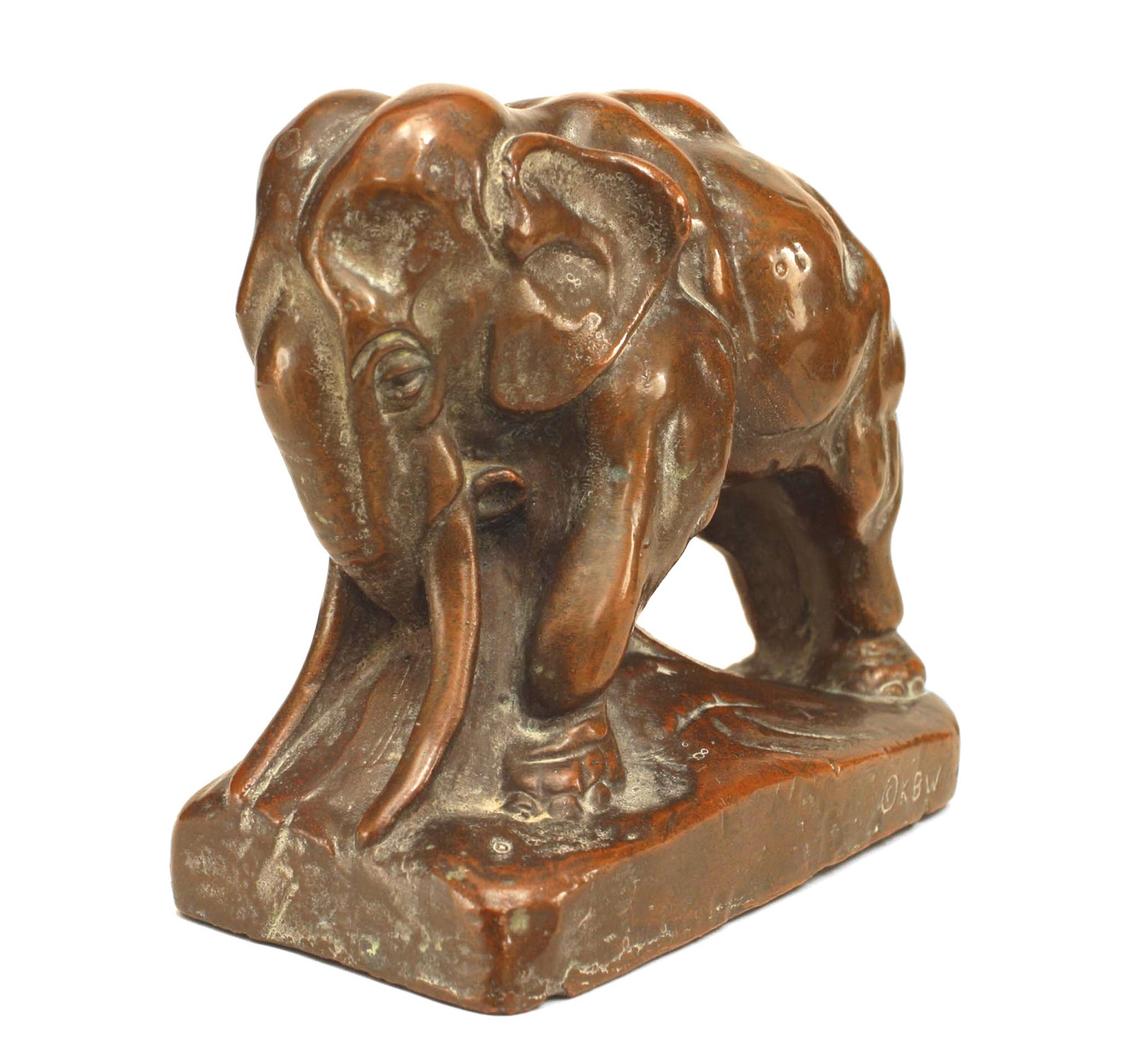 PAIR of Continental (possibly Austrian - 20th Century) bronze-patinated copper bookends in the form of elephants. (PRICED AS PAIR).