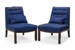Pair of Edward Wormley for Dunbar American Mid-Century Dark Blue Upholstered Slipper / Side Chairs