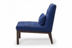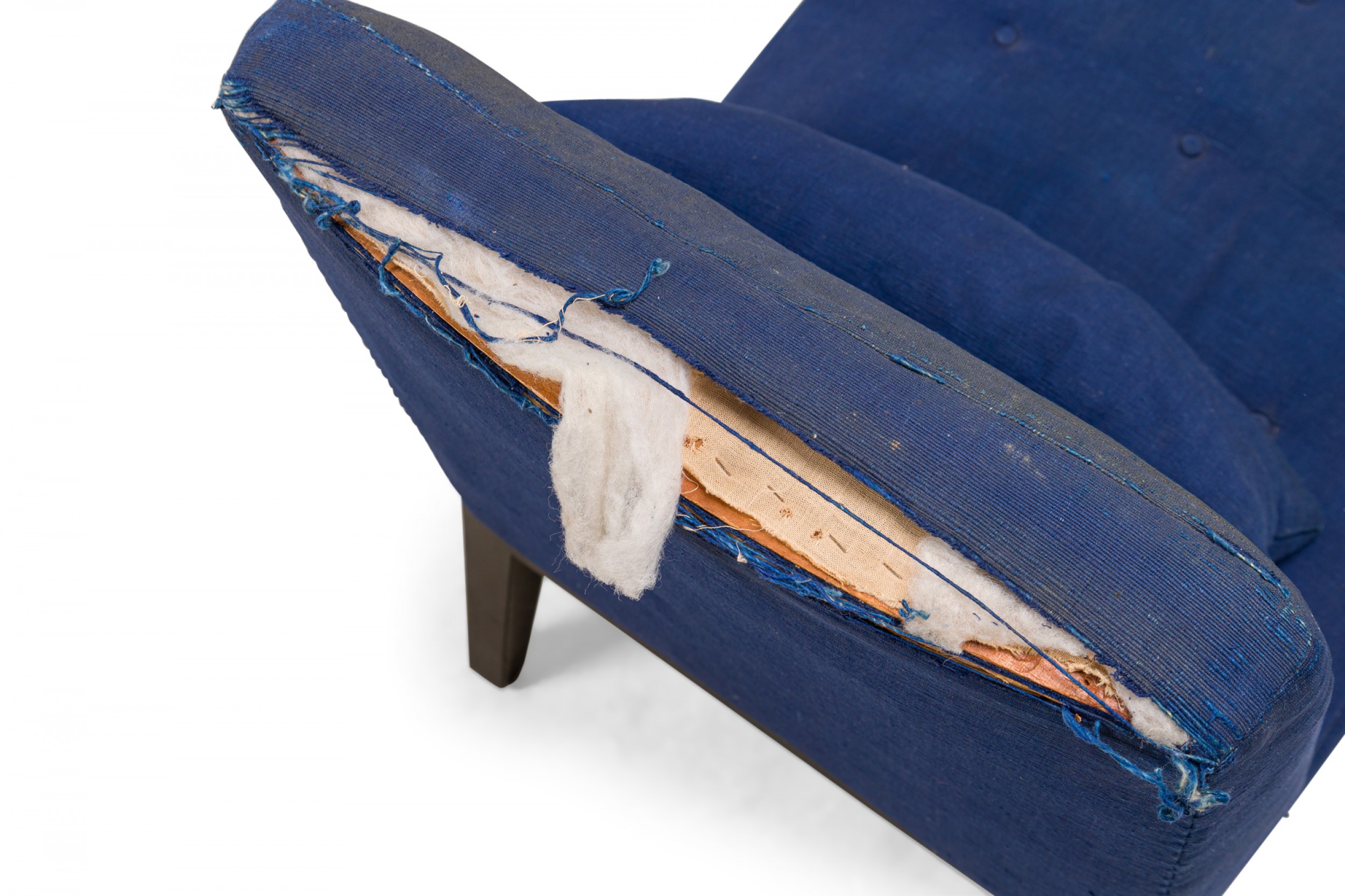 PAIR of American Mid-Century slipper / side chairs, upholstered in a dark blue fabric with button tufting on the seat backs, resting on four square walnut legs. (EDWARD WORMLEY FOR DUNBAR FURNITURE COMPANY)(PRICED AS PAIR)
