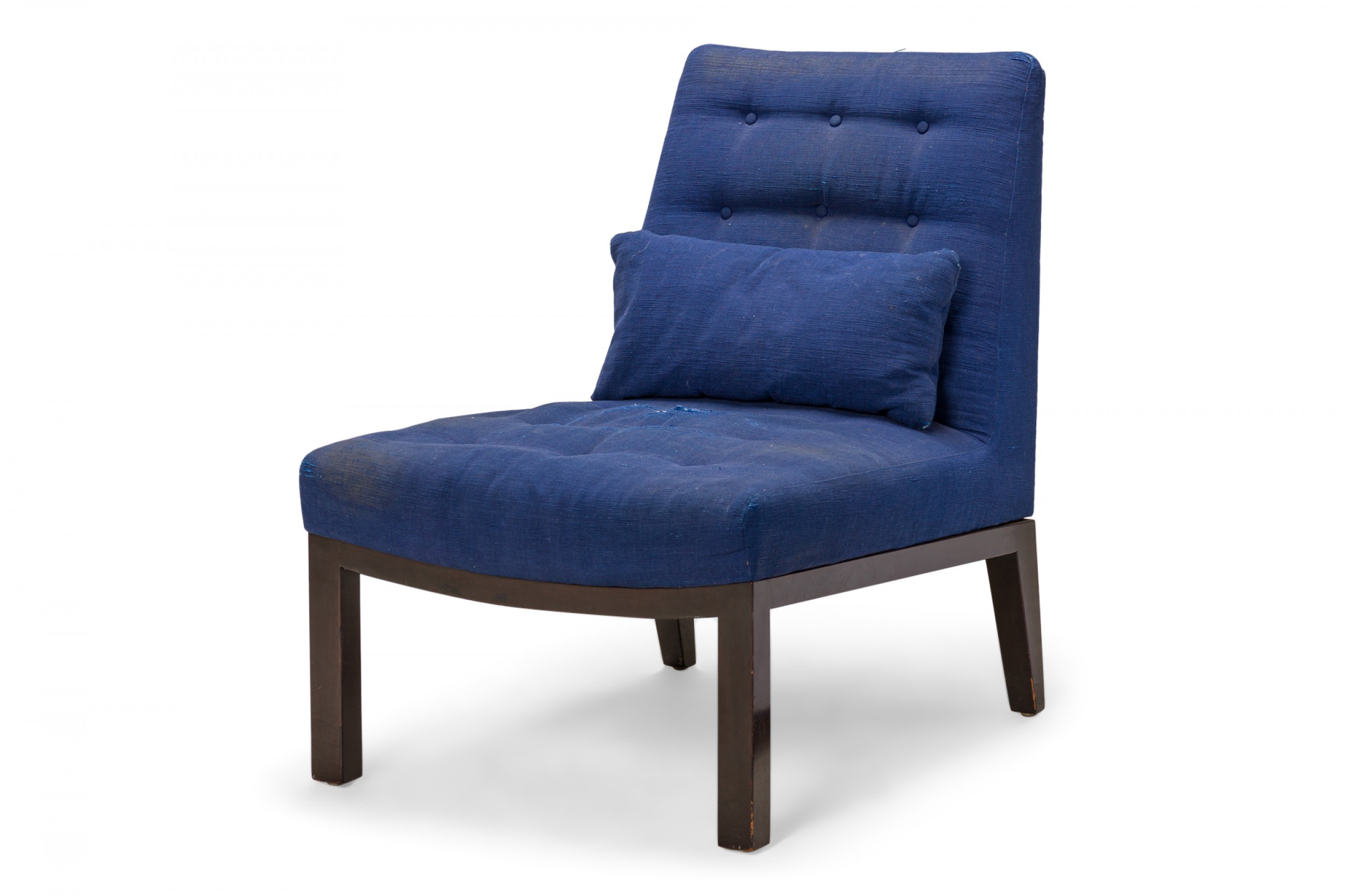 PAIR of American Mid-Century slipper / side chairs, upholstered in a dark blue fabric with button tufting on the seat backs, resting on four square walnut legs. (EDWARD WORMLEY FOR DUNBAR FURNITURE COMPANY)(PRICED AS PAIR).