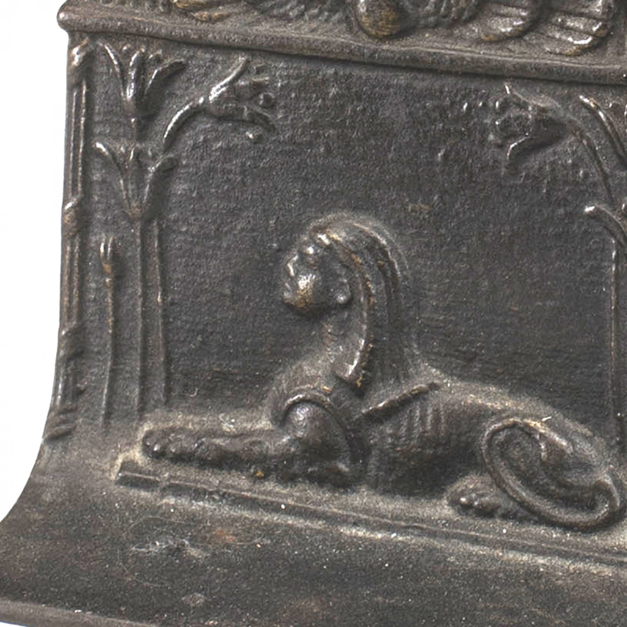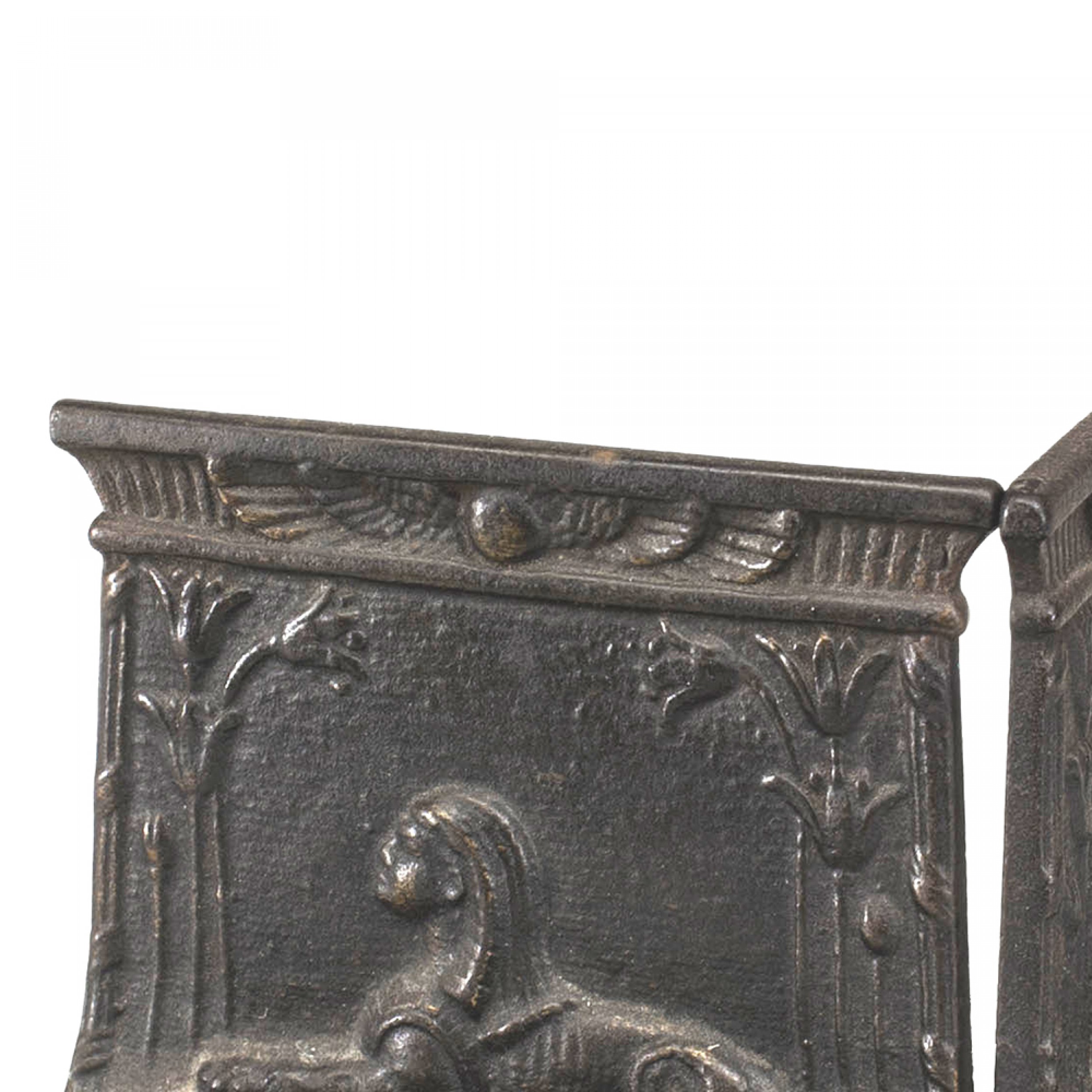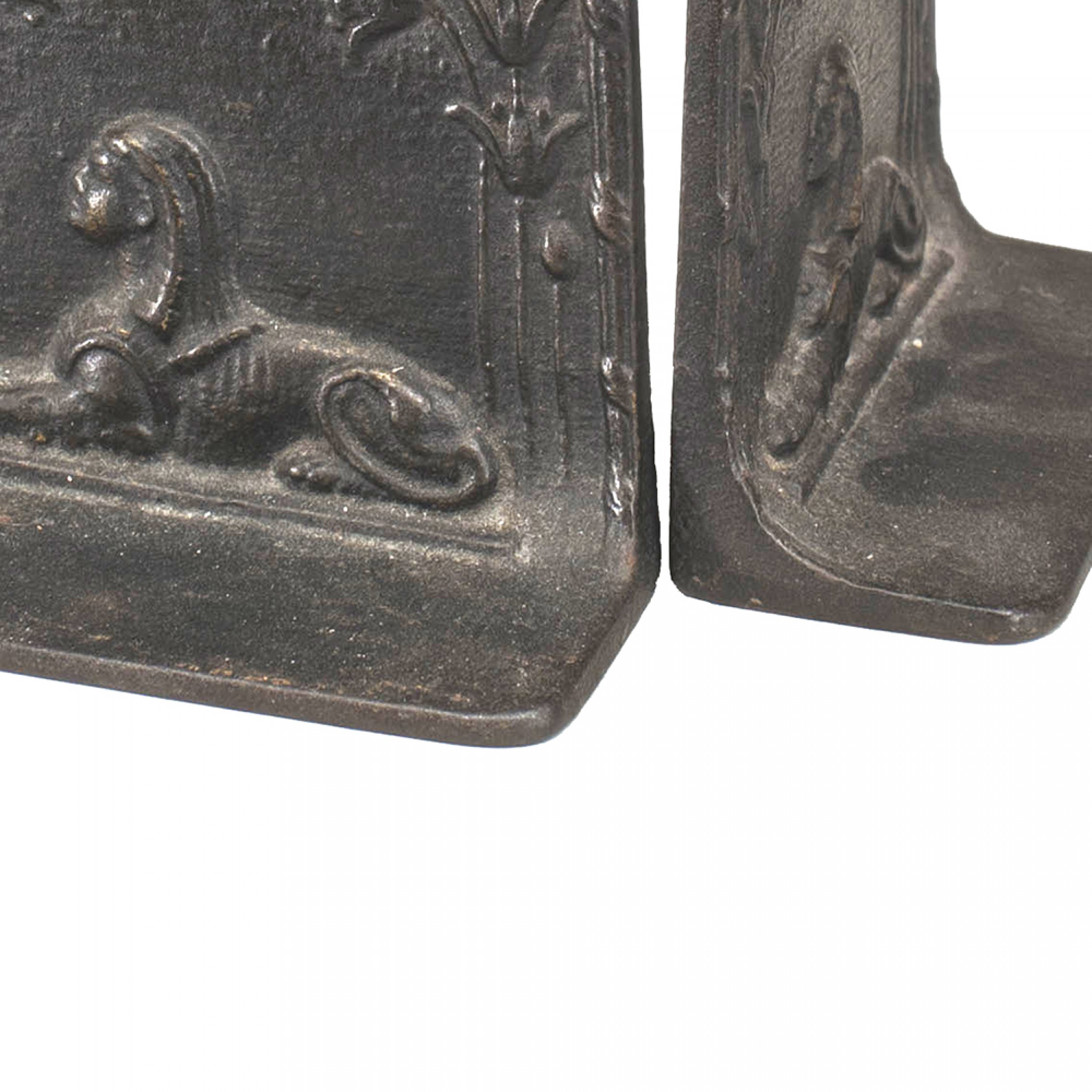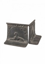PAIR of Middle Eastern Egyptian-style (Art Deco) iron small bookends with reclining sphinx figure. (PRICED AS PAIR).