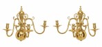 PAIR of English Georgian-Style brass 3 light sconces with scroll design arms. (PRICED AS PAIR).