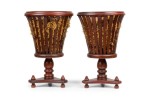 Pair of English Regency Style Slatted planters supported by pedastal bases