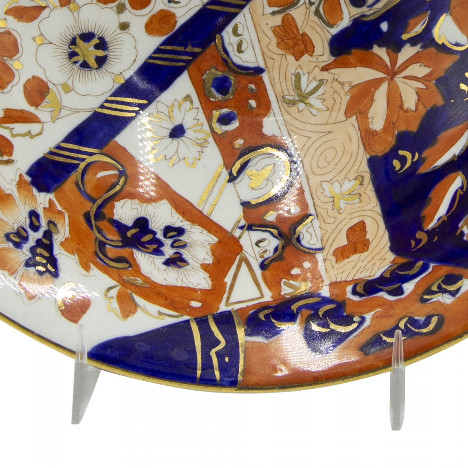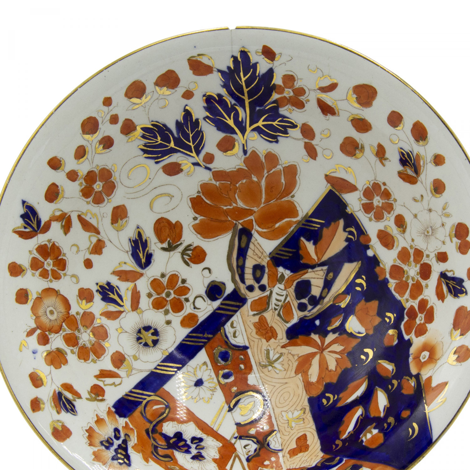 PAIR of English Victorian orange, blue, and white porcelain bowls with floral design and gold rim (Old Derby) (1 as is) (PRICED AS PAIR).