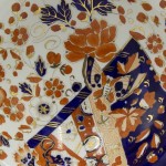 PAIR of English Victorian orange, blue, and white porcelain bowls with floral design and gold rim (Old Derby) (1 as is) (PRICED AS PAIR)