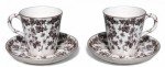PAIR of English Victorian white and brown porcelain tea cups and saucers with floral and leaf decoration (Royal Worcester) (PRICED AS PAIR)