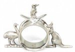 Pair of English (Australian) Victorian silver plate napkin rings with emu bird, kangaroo, and kingfisher bird (PRICED AS PAIR)