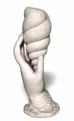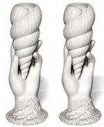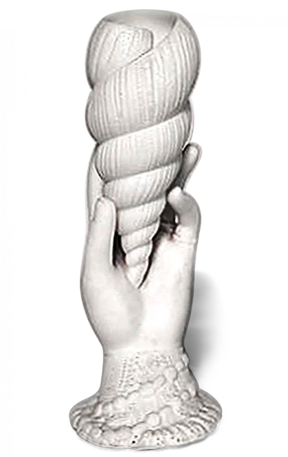 PAIR of French Victorian parian porcelain vases of a hand holding a swirl form shell (PRICED AS PAIR).