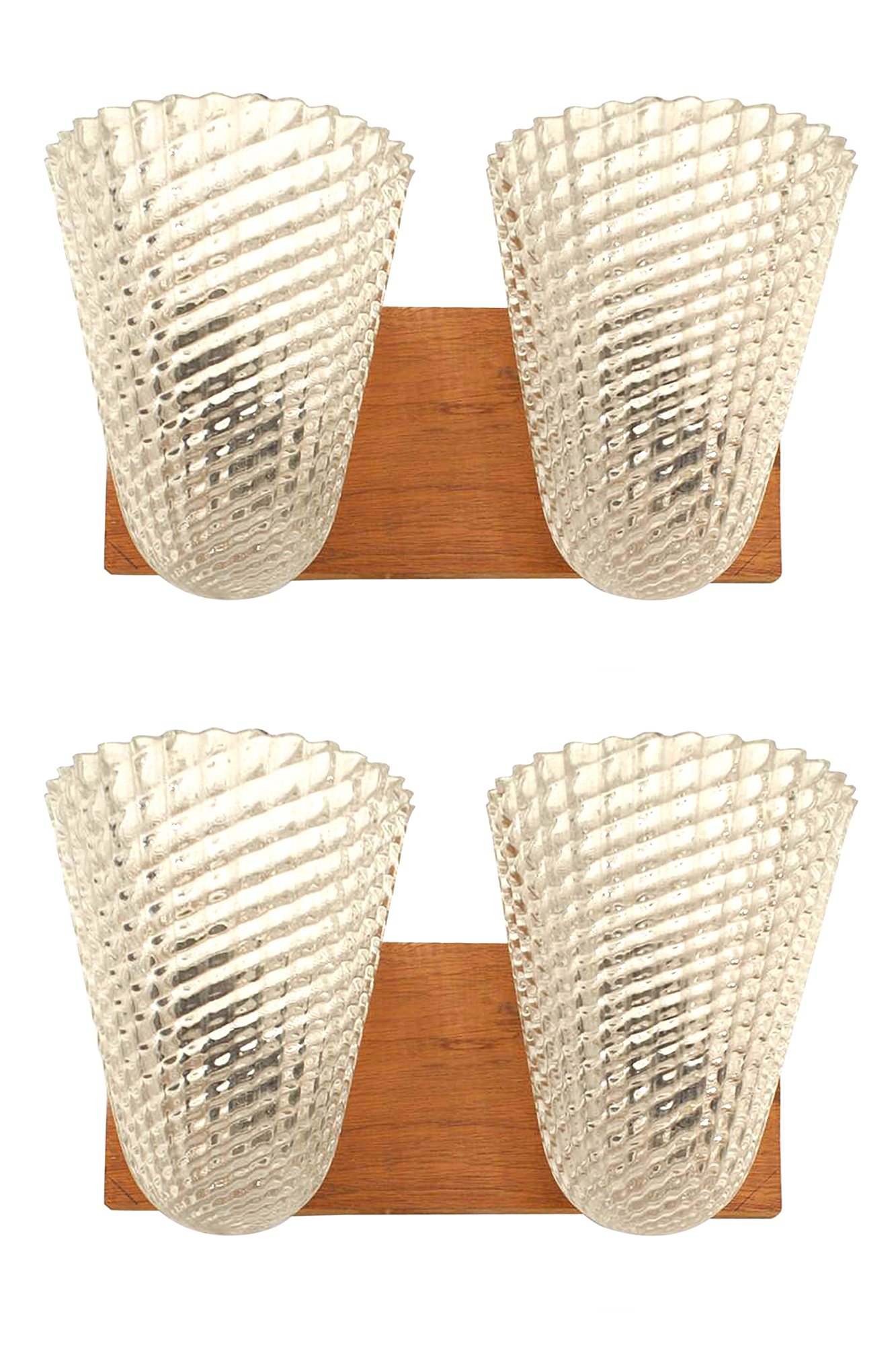 PAIR of Italian 1940s Venetian Murano "PALLOTTON" crystal glass shade wall sconces with scalloped top and swirl segmented design. (att: BAROVIER ET TOSO) (PRICED AS PAIR).