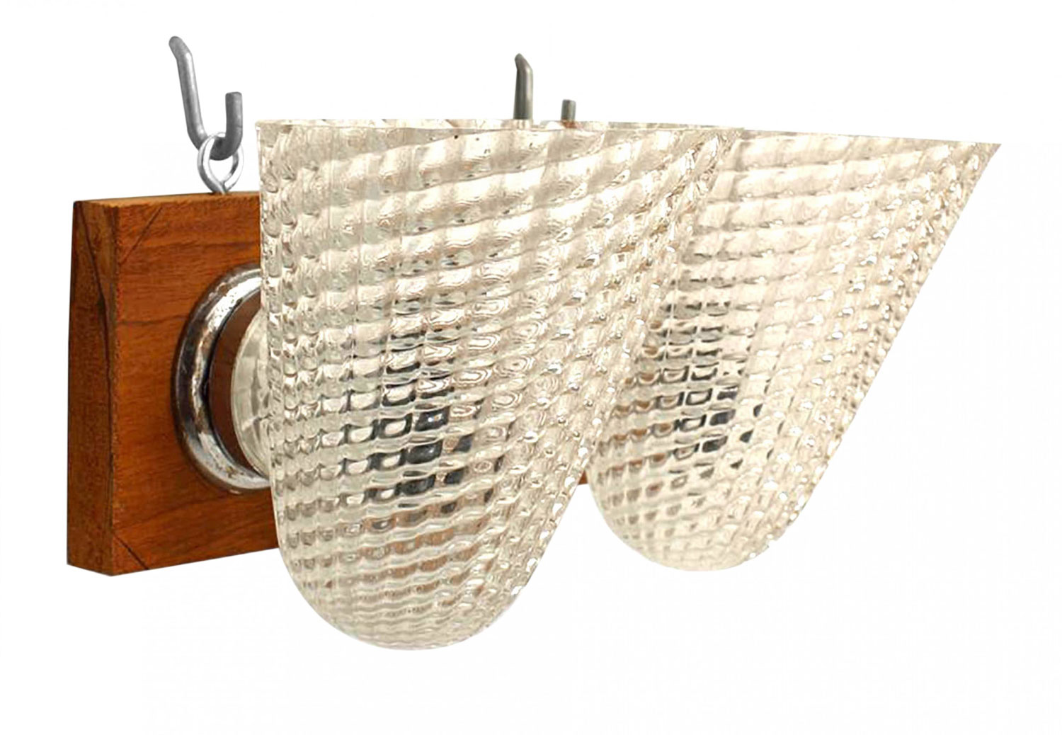 PAIR of Italian 1940s Venetian Murano "PALLOTTON" crystal glass shade wall sconces with scalloped top and swirl segmented design. (att: BAROVIER ET TOSO) (PRICED AS PAIR)