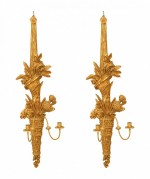 PAIR of Italian Neo-Classic-Style (19th Century) gilt wood 2 arm wall sconces carved with a cornucopia and floral motif. (PRICED AS PAIR).