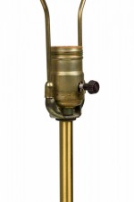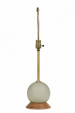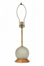 Style: Mid-Century Materials & Techniques: Brass, ceramic, metal, veneer, wood Category: Lighting Condition: 25" height with harp & finial. Electrics non-working in both lamps, need rewiring. Ships without shades. Good; Wear consistent with age and use